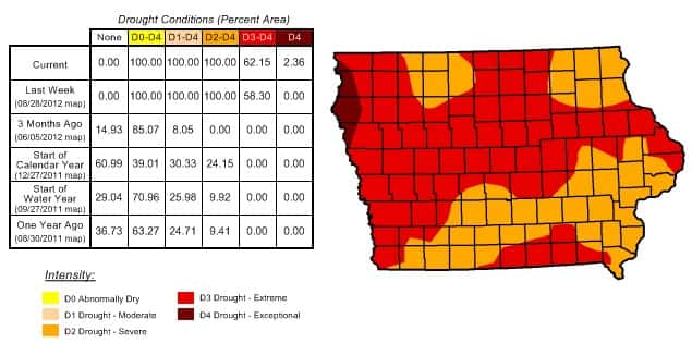 According to the latest U.S. Drought Monitor, released by the National Climatic Data Center, there are still extreme drought conditions for all of Greene County, the majority of Guthrie County and northern half of Dallas County. The extreme southeast corner of Guthrie and southern half of Dallas Counties remain in a severe drought.