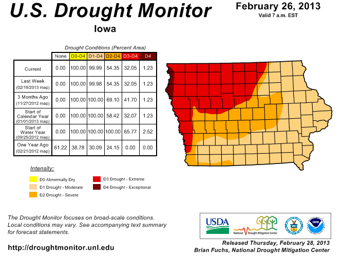 The drought continues across the state of Iowa but good news is part of the Raccoon River Valley actually received above normal levels of precipitation in February.