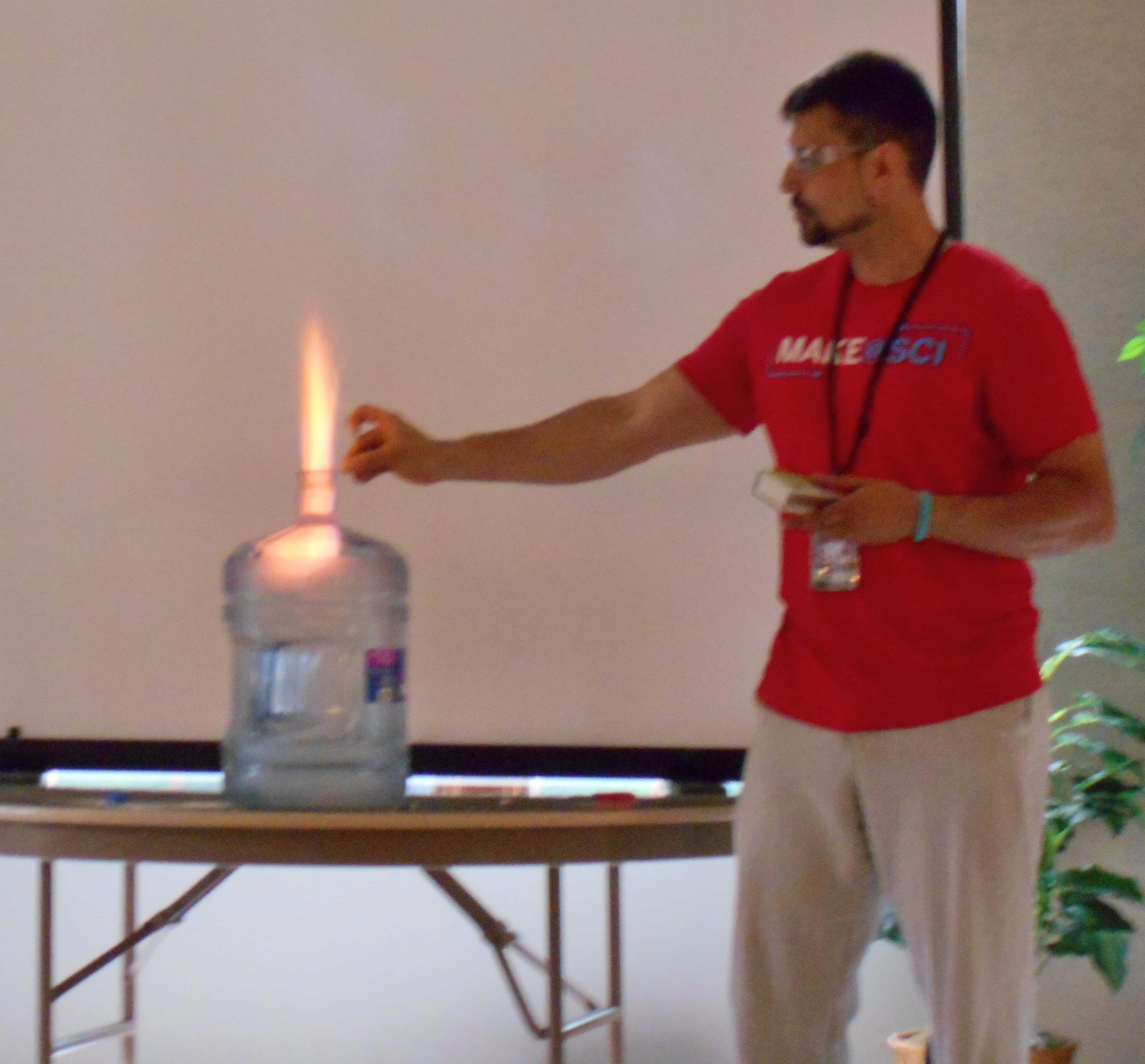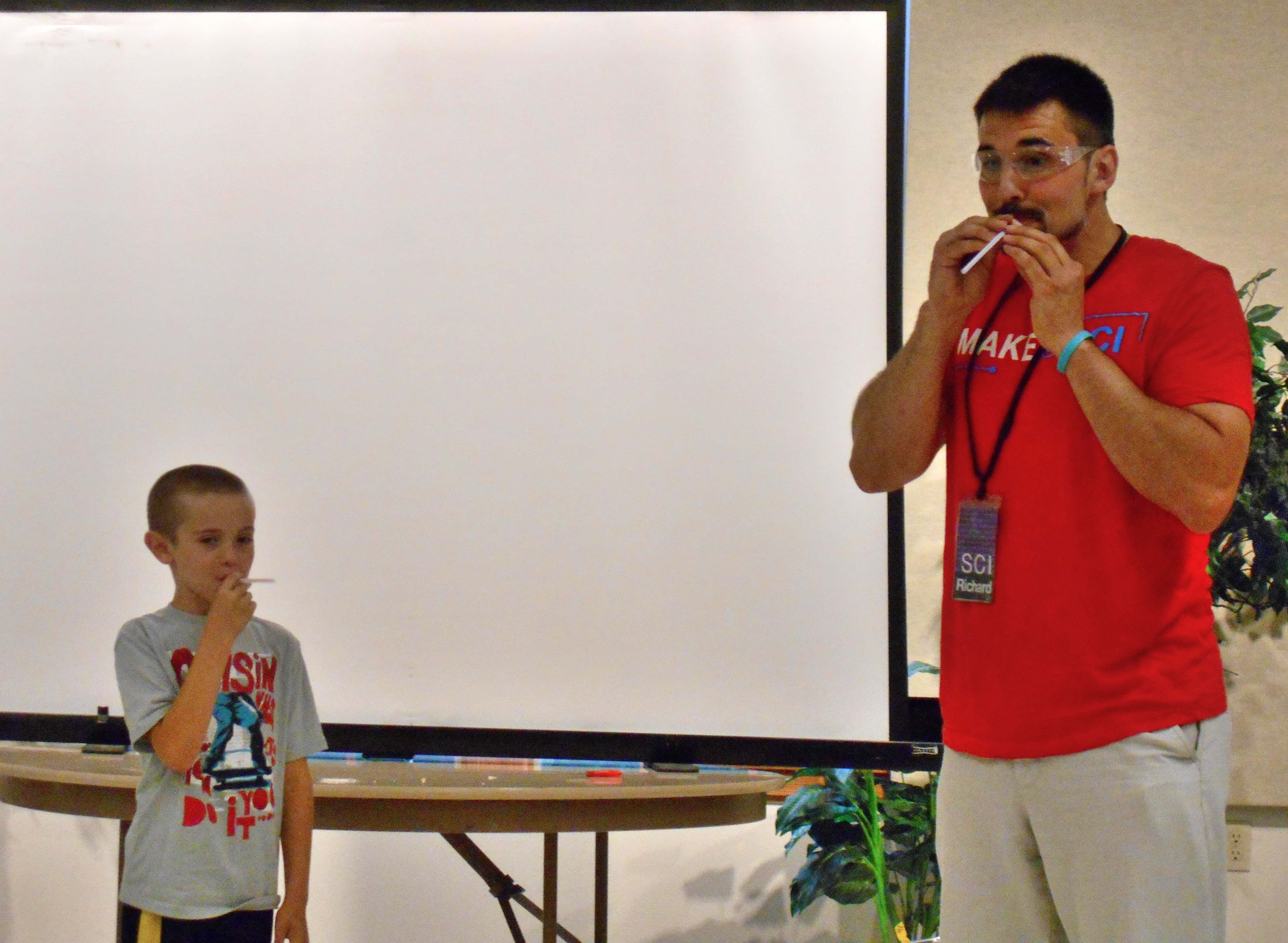 About 60 kids watched programs coordinator Richard Miles conduct various experiments and learn about different types of studies of science. The event relates to this year’s summer reading program, “Fizz. Boom. READ”.