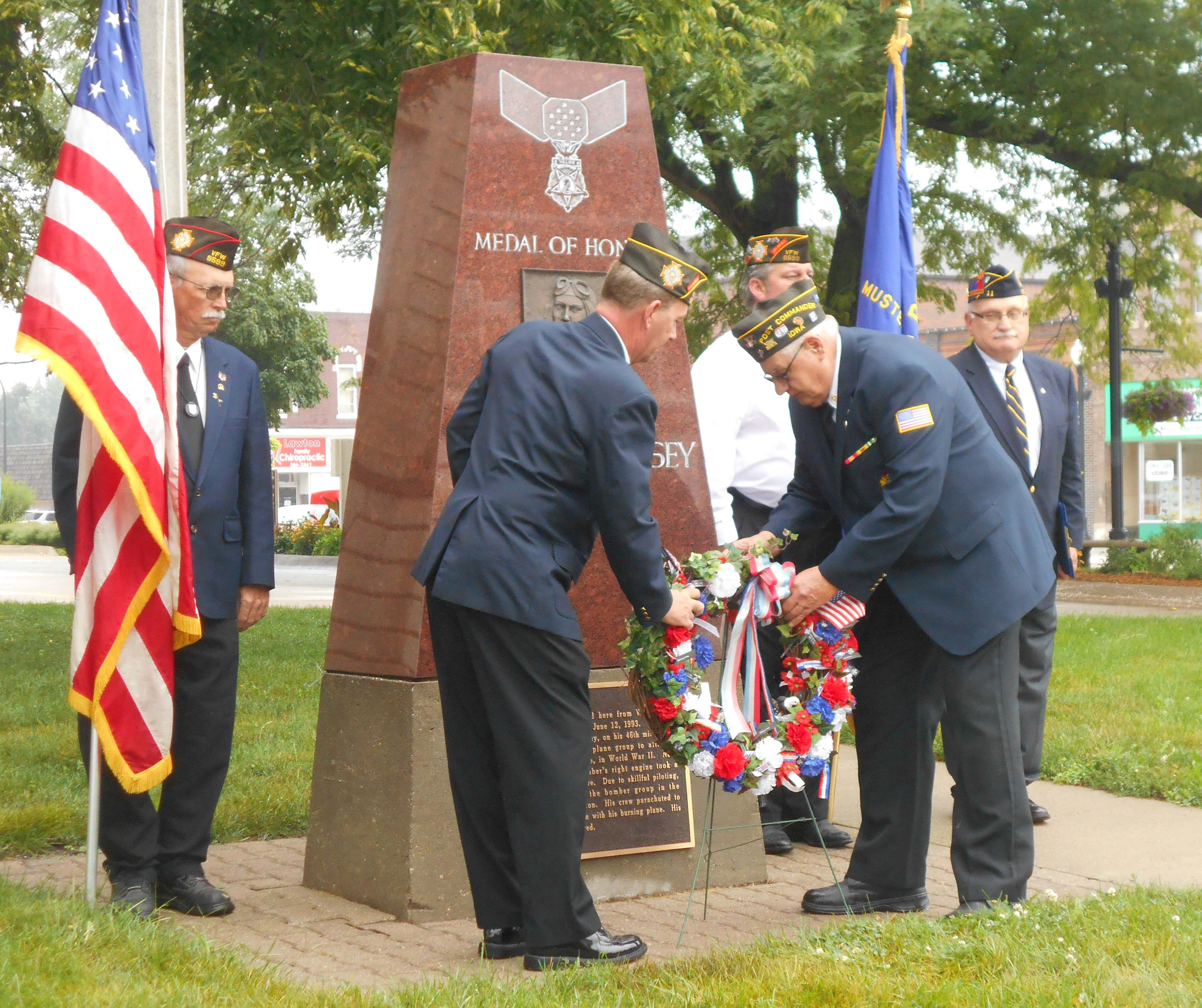 Yesterday, the Jefferson VFW Post #9599 conducted a wreath laying ceremony during a re-dedication event of the 70th anniversary of Jefferson native US Army/Air Force Captain Darrell Lindsey who received the Medal of Honor following his plane being shot down by enemy fire in World War II. Below are pictures from the event and a video about the background of Captain Lindsey.