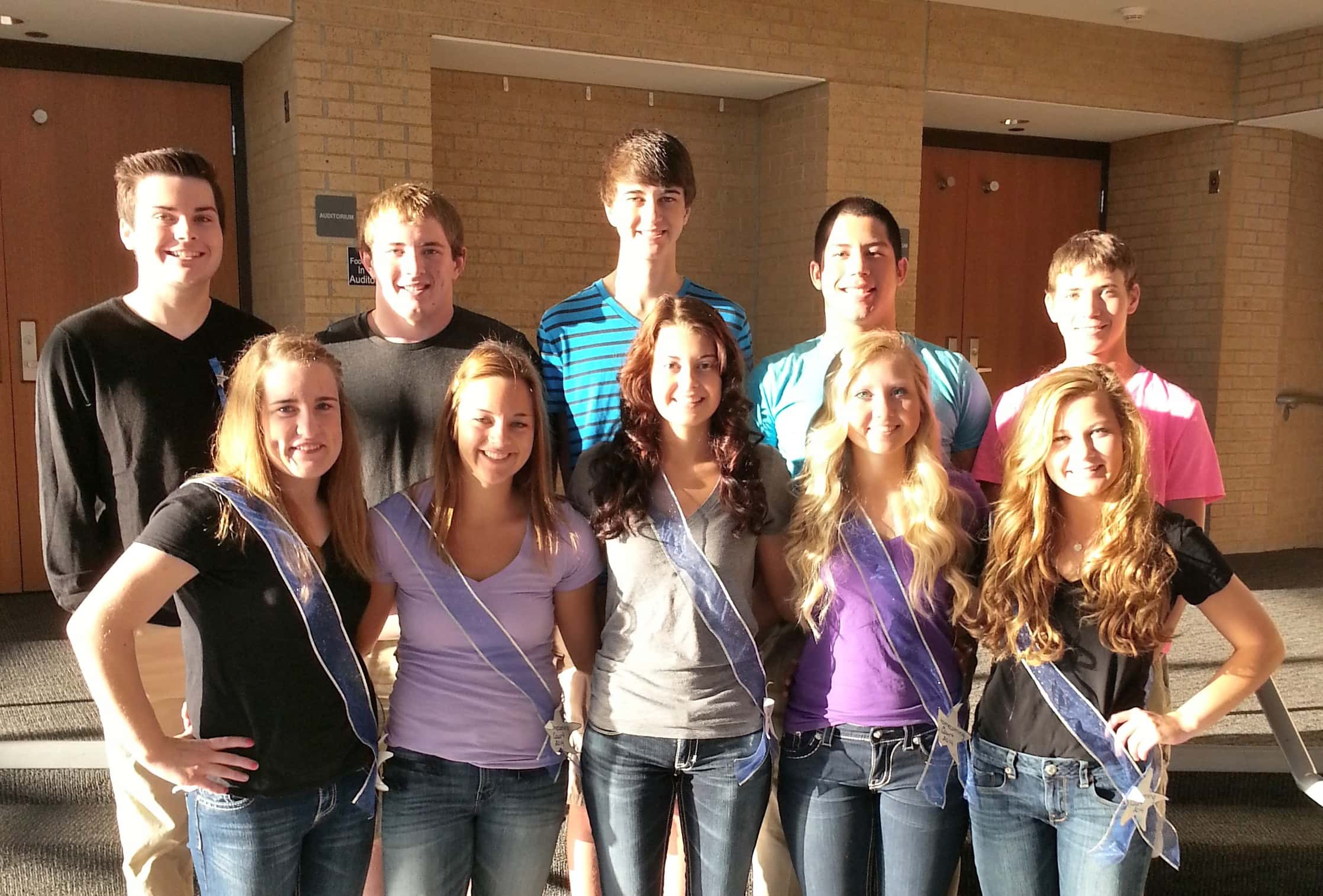 The homecoming court includes: Katie Nelson, Kylie Arhensen, Anna Koch, Jade Cunningham, Hannah Appleseth, Hunter Mobley, Marcus Boldy, Aaron Jarnagin, Wilson Solorzano and Kole Steiner.