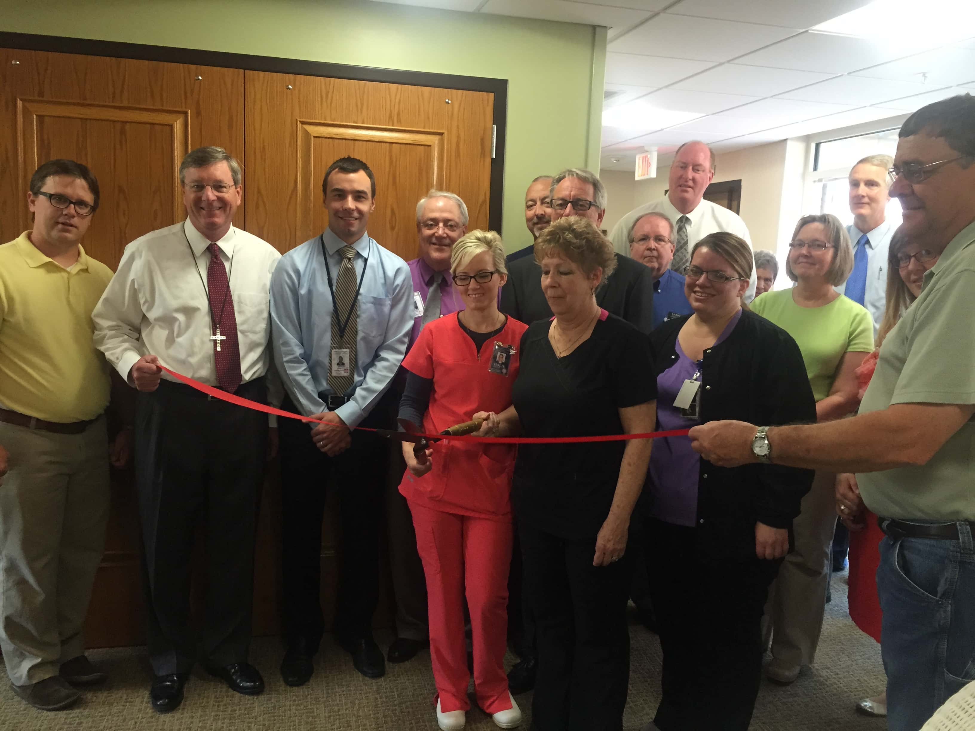 Around three dozen people gathered at the Perry Lutheran Home Monday morning for an open house in celebration of the new St. John’s memory care ward.