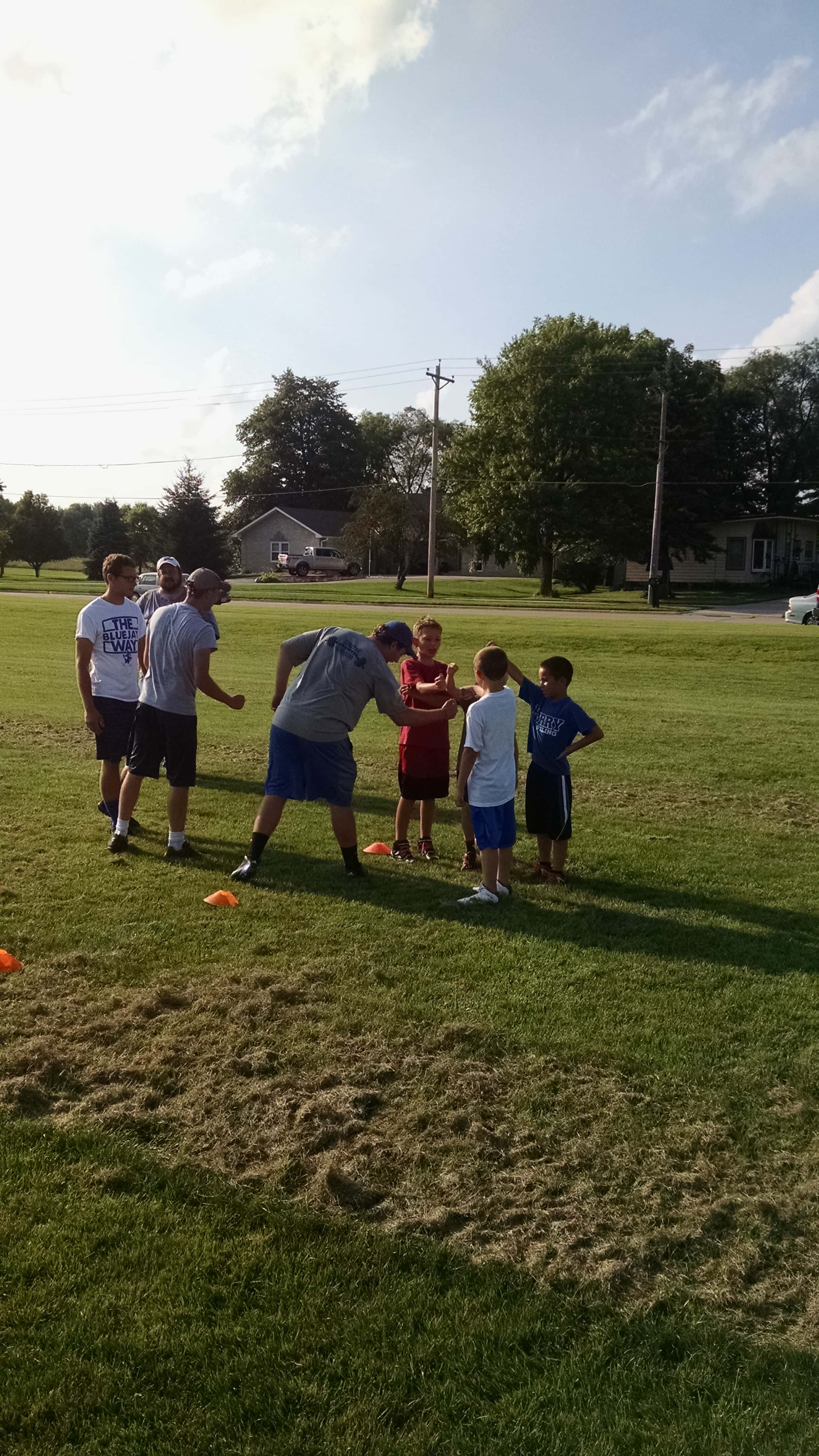 Around 30 future Perry football players attended the Future Perry Bluejay Football Camp Thursday night and Friday morning at the Perry Practice Facility. The camp was organized by High School Head Coach Jason Olejniczak. Kids, ranging in age from 3rd grade up to 6th grade, learned some of the fundamentals of football and had the opportunity to listen to and practice with some current college players. Iowa State starting middle linebacker Kane Seeley, and Luther starting defensive players Gabe Saemisch and Jackson Van Kirk returned to the very same practice field that made them the successful players they are today.