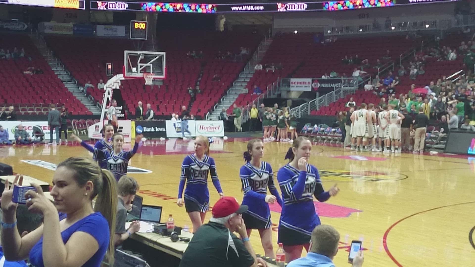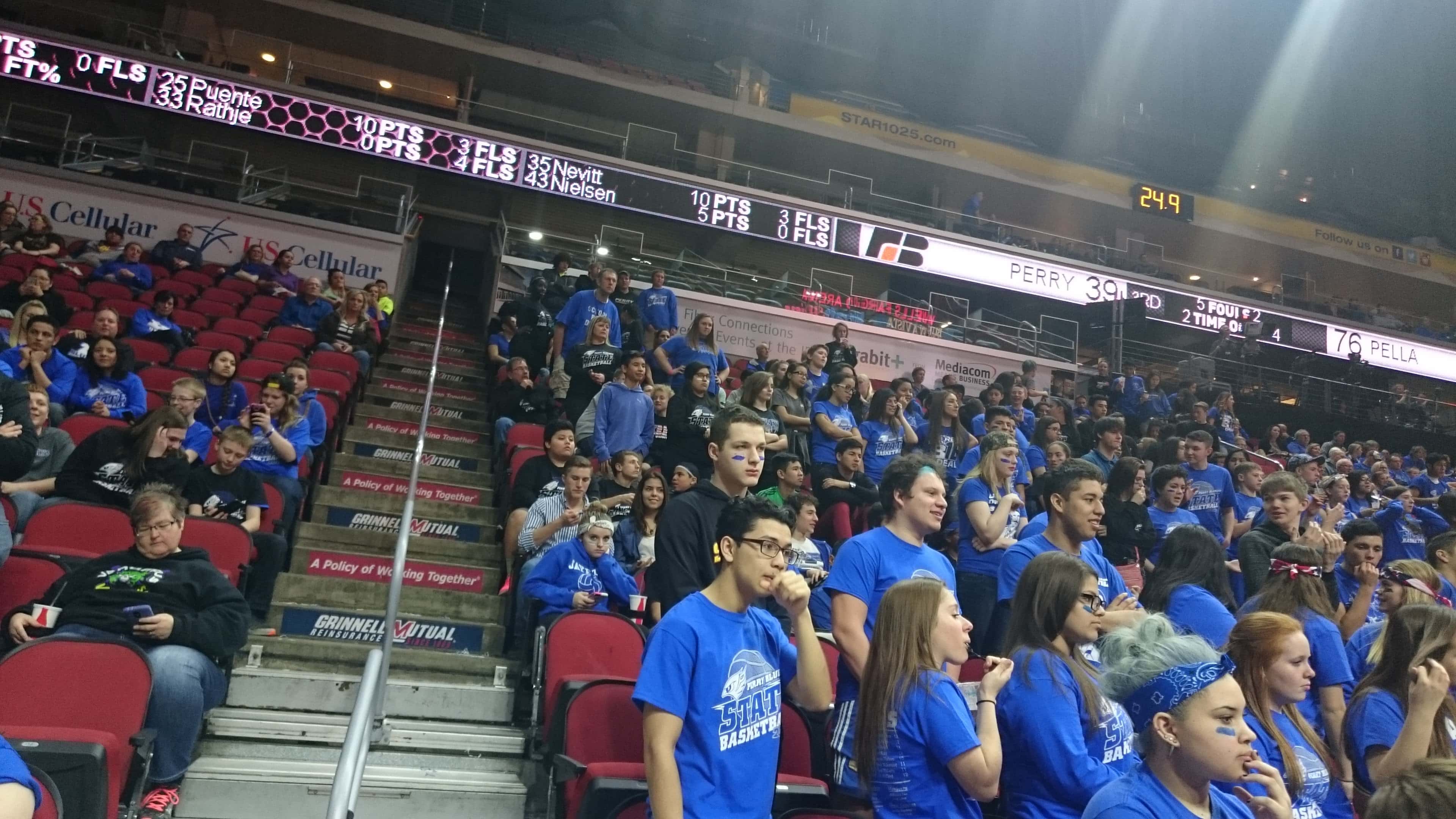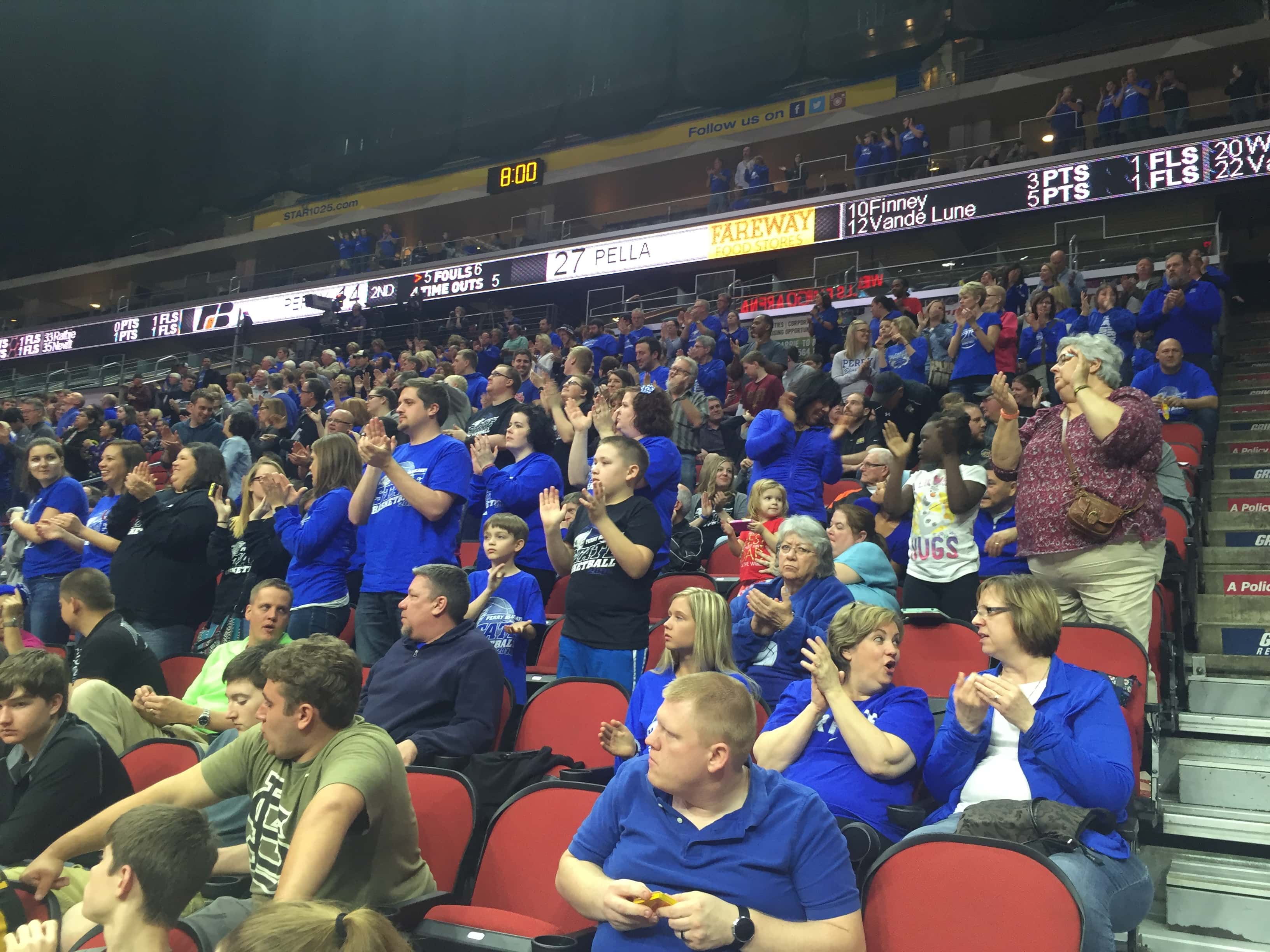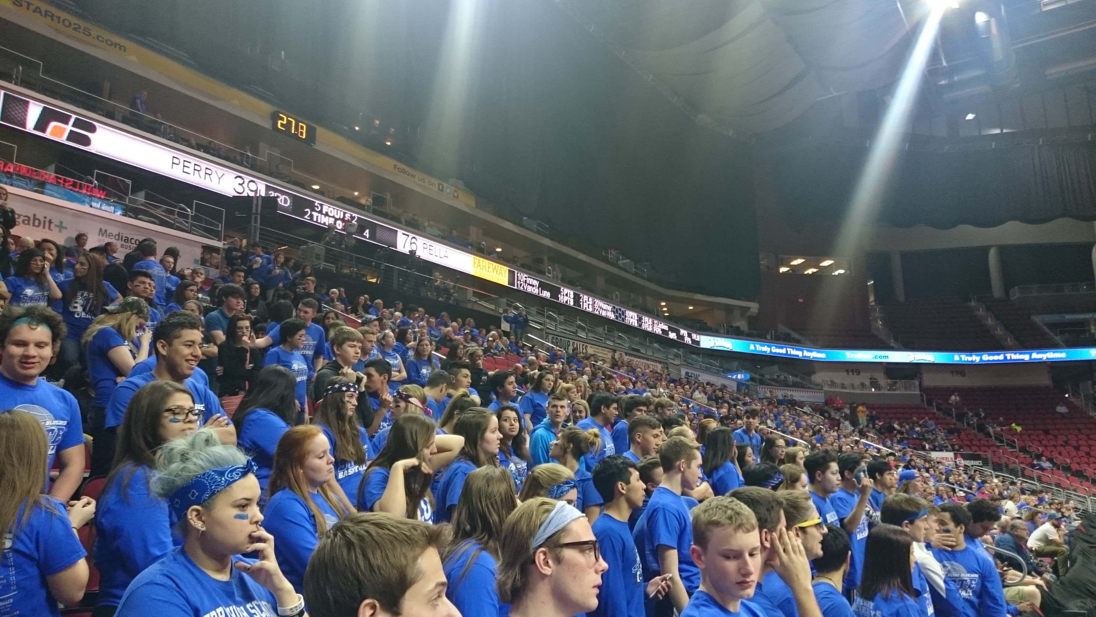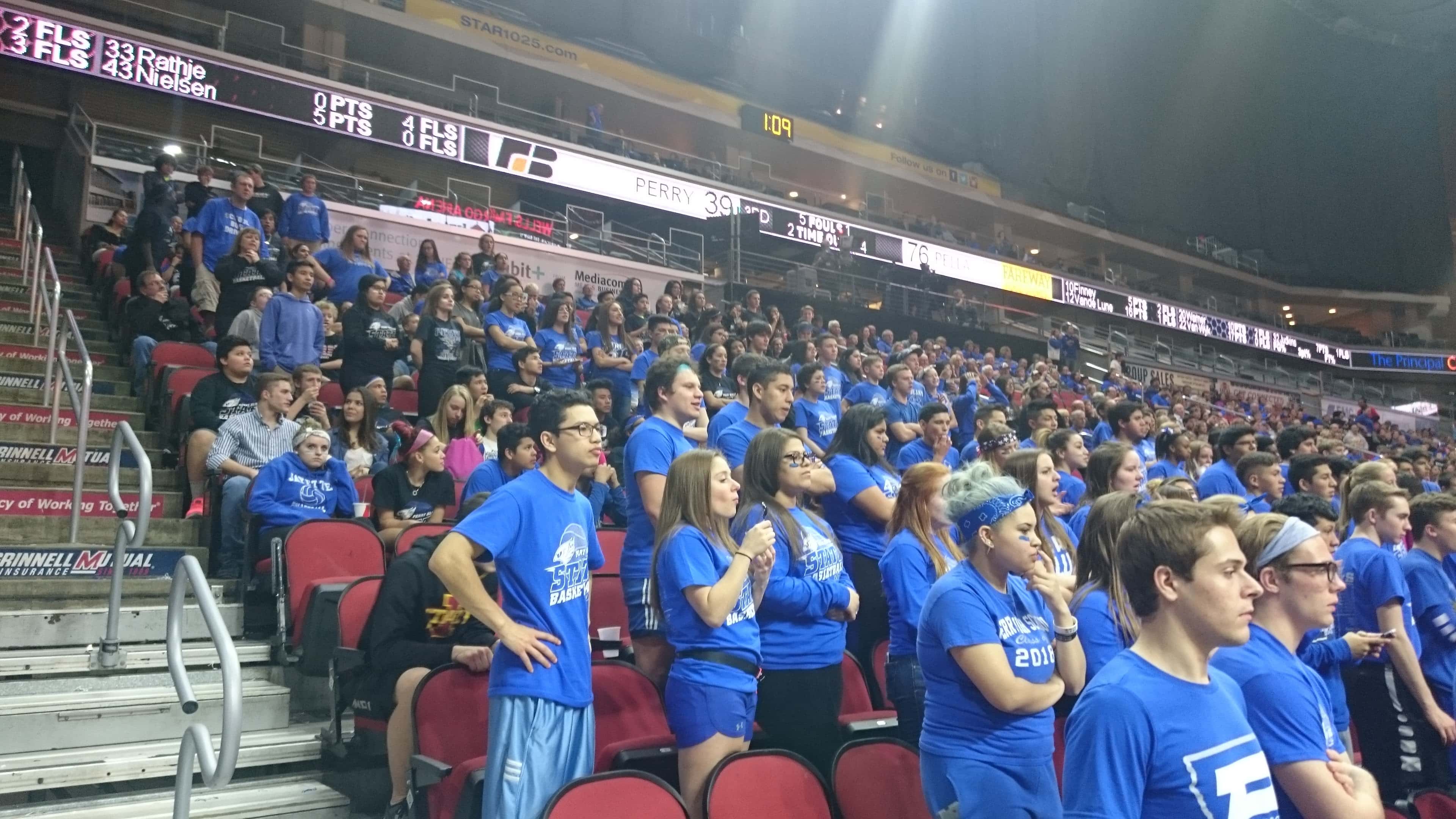 A sea of blue headed to the Wells Fargo Arena to cheer on the Bluejays but the second seeded Pella Dutch defeated Perry by a score of 54 to 94. The 2015-2016 season was the first time Perry advanced to the state tournament since 1988 and the end the season with a record of 15 and 10.