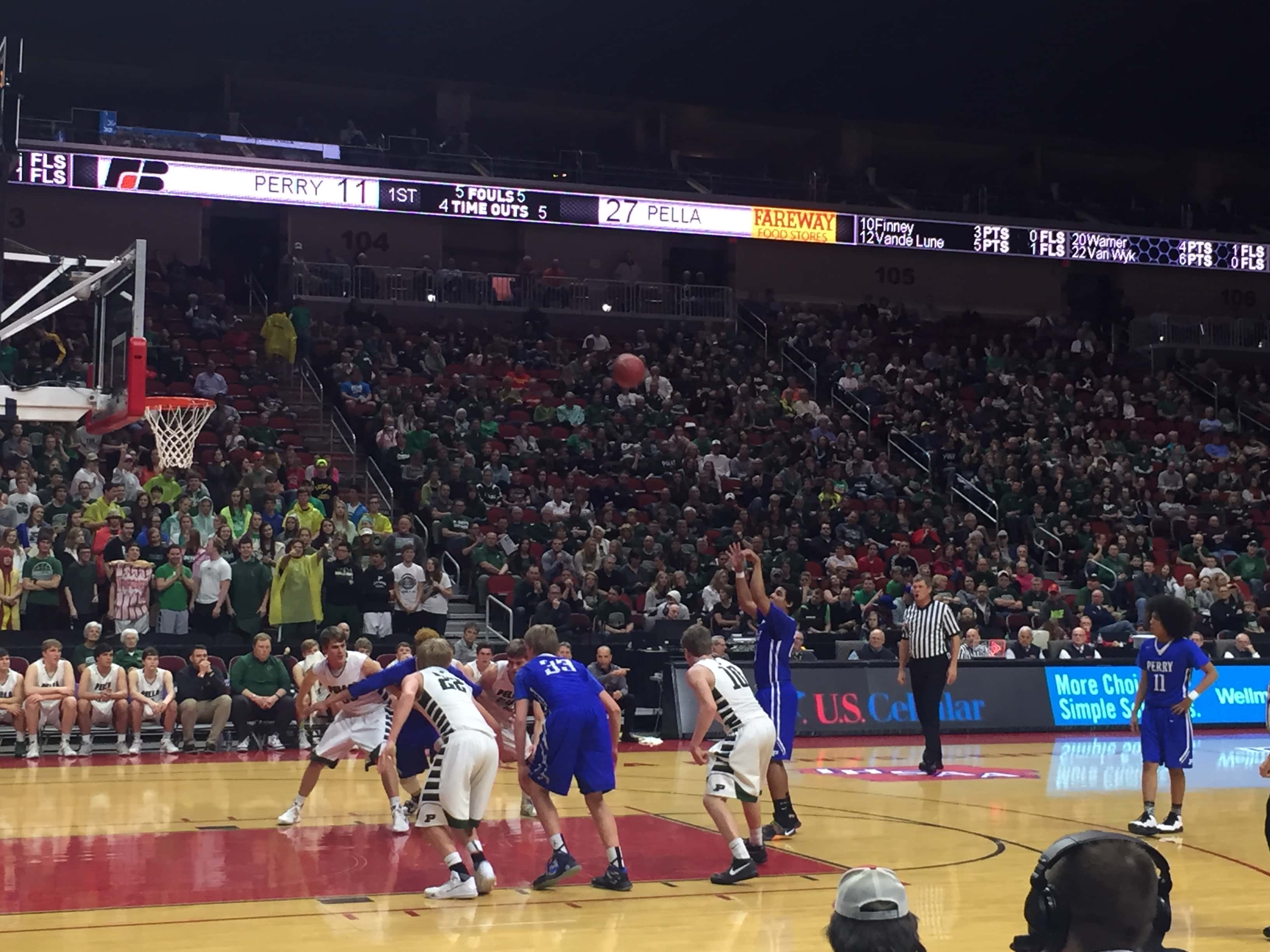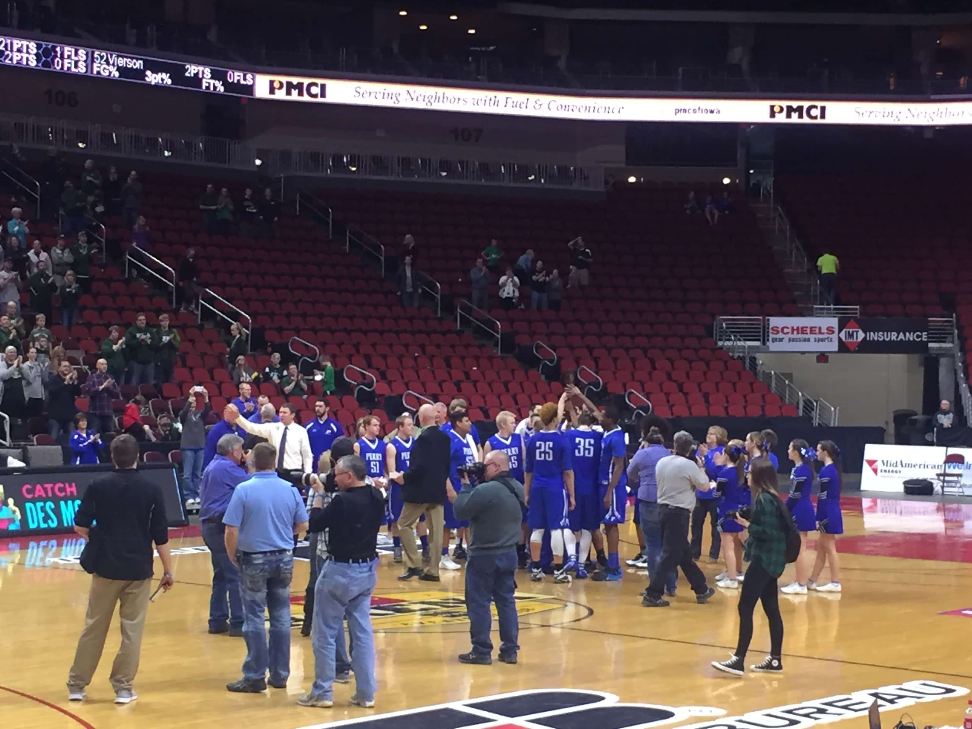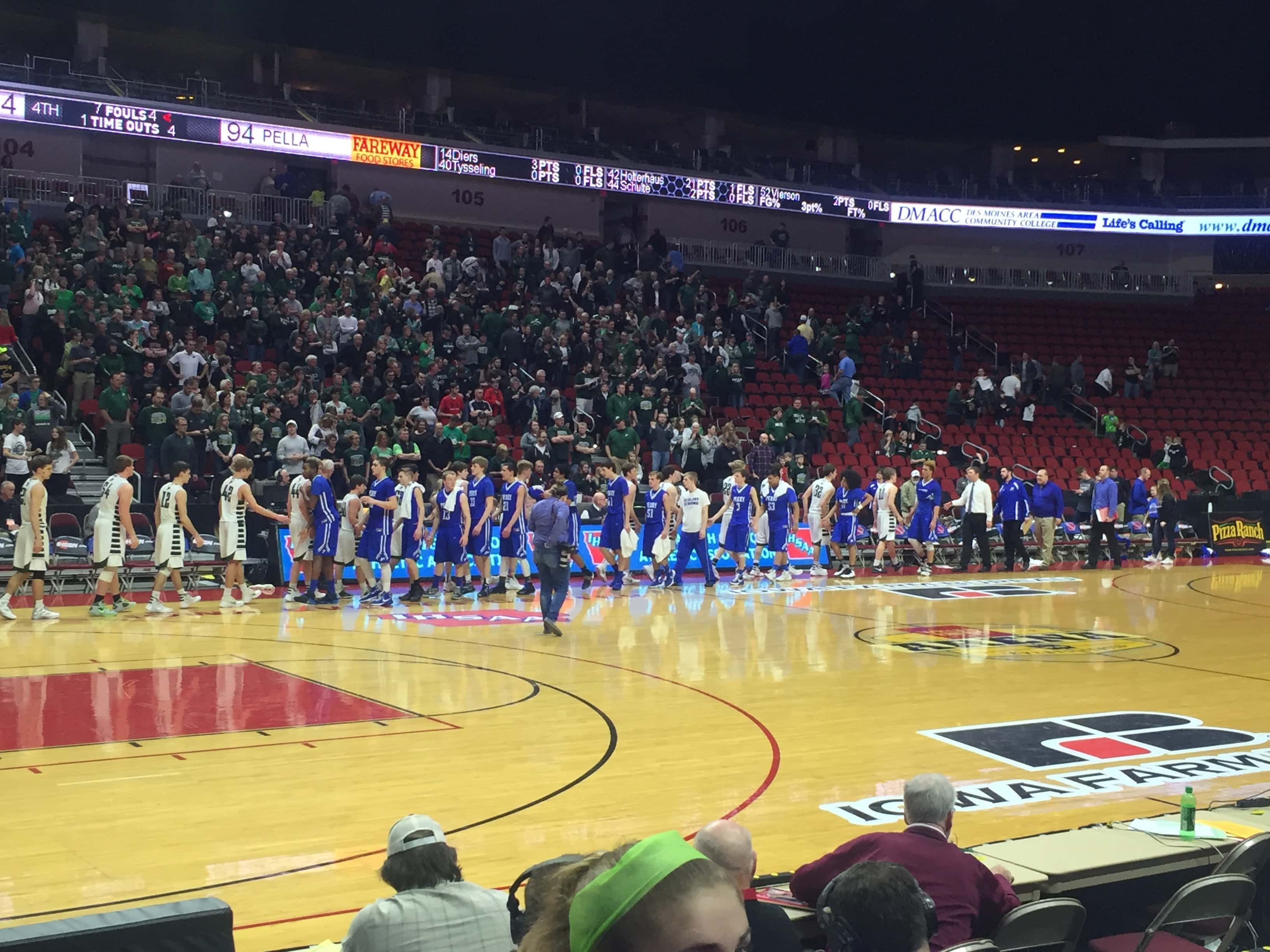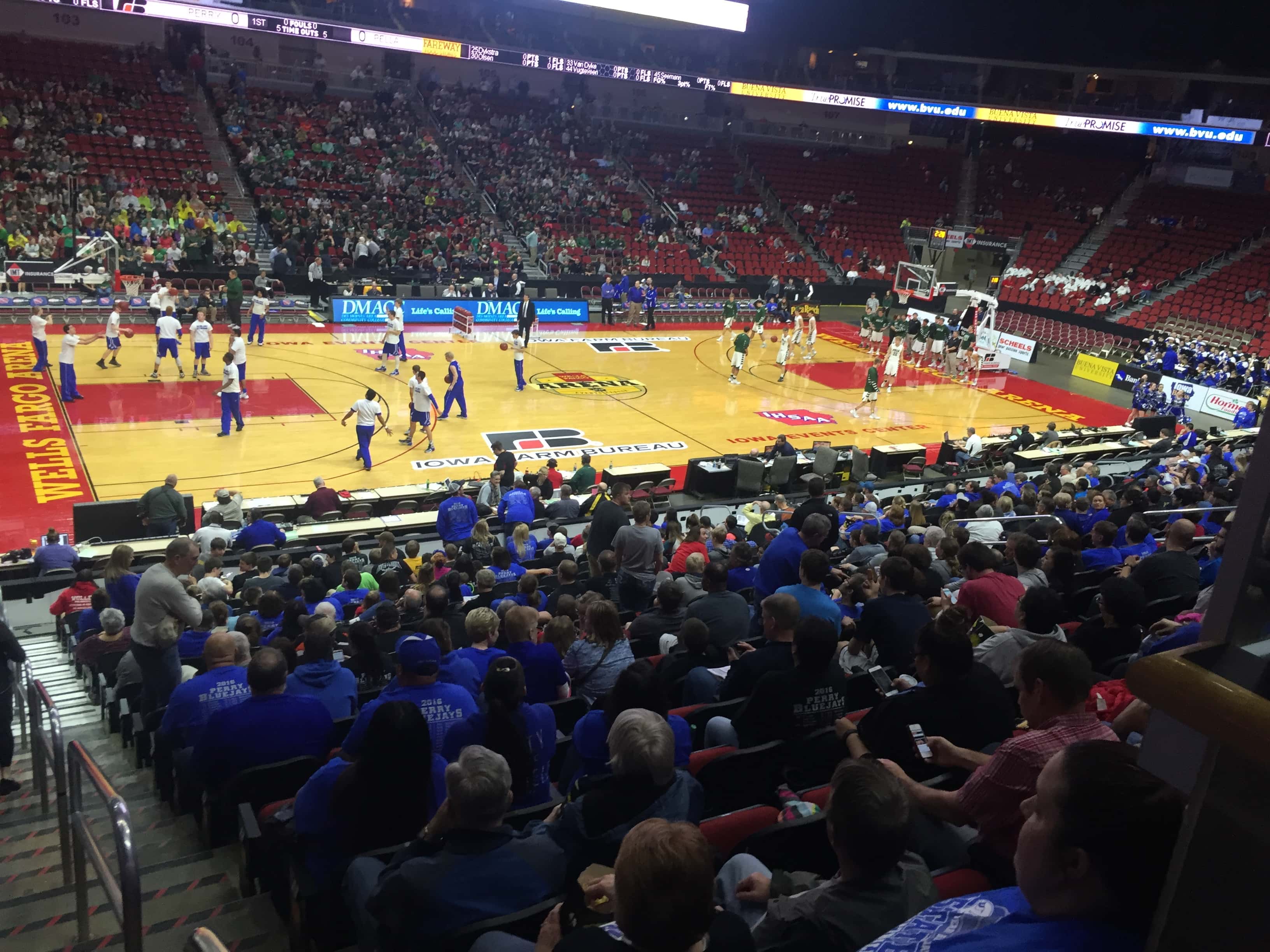 A sea of blue headed to the Wells Fargo Arena to cheer on the Bluejays but the second seeded Pella Dutch defeated Perry by a score of 54 to 94. The 2015-2016 season was the first time Perry advanced to the state tournament since 1988 and the end the season with a record of 15 and 10.