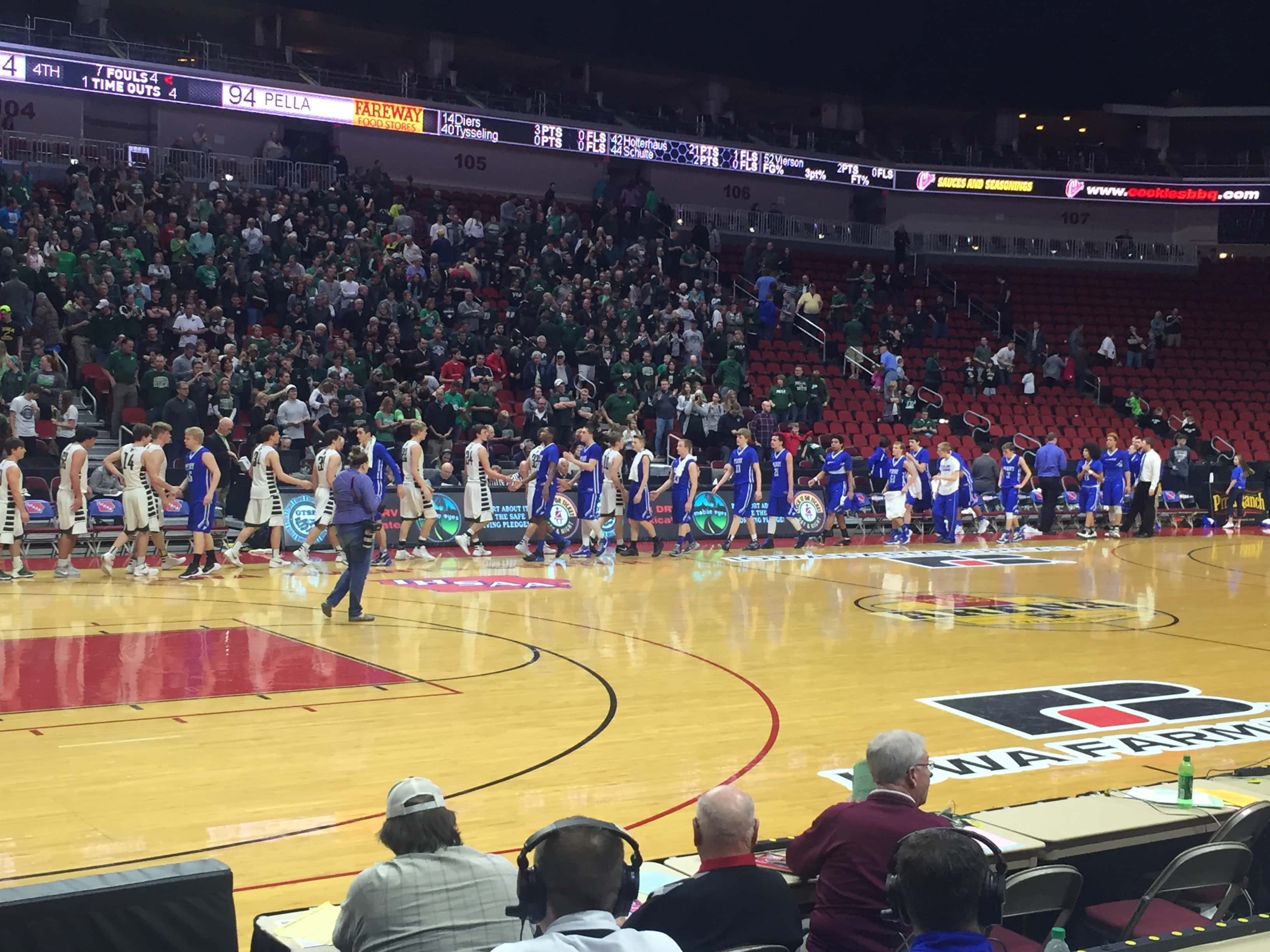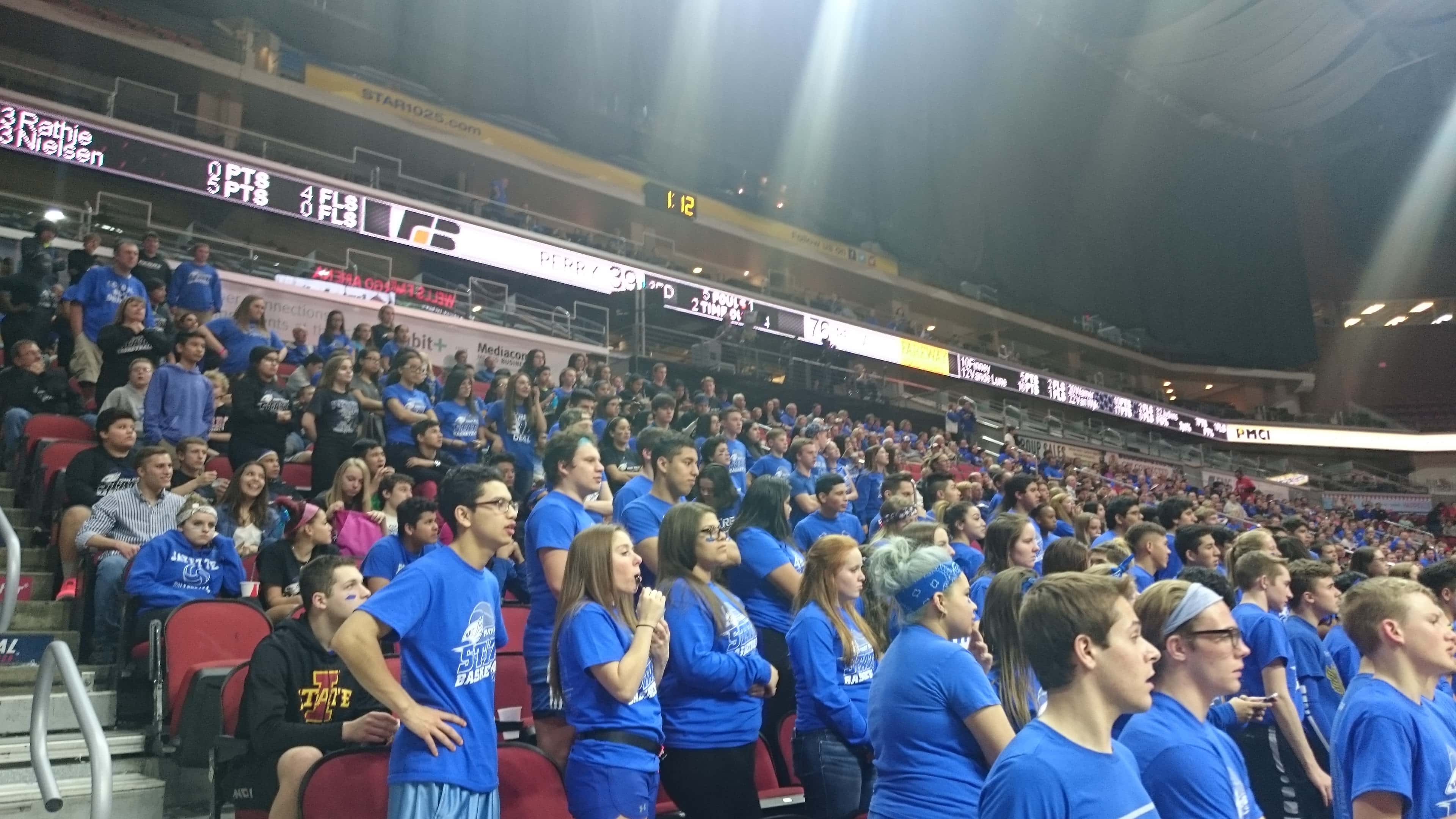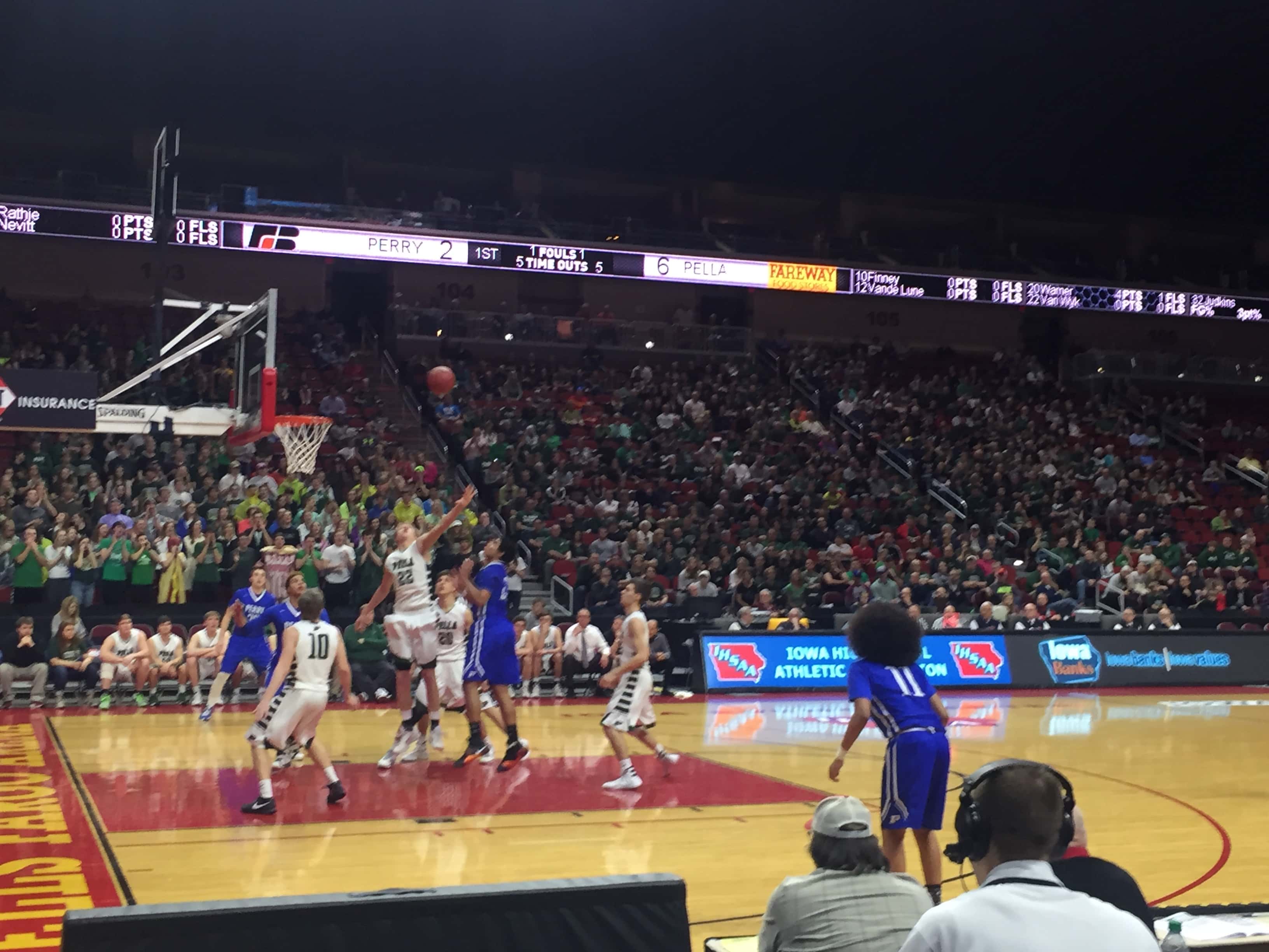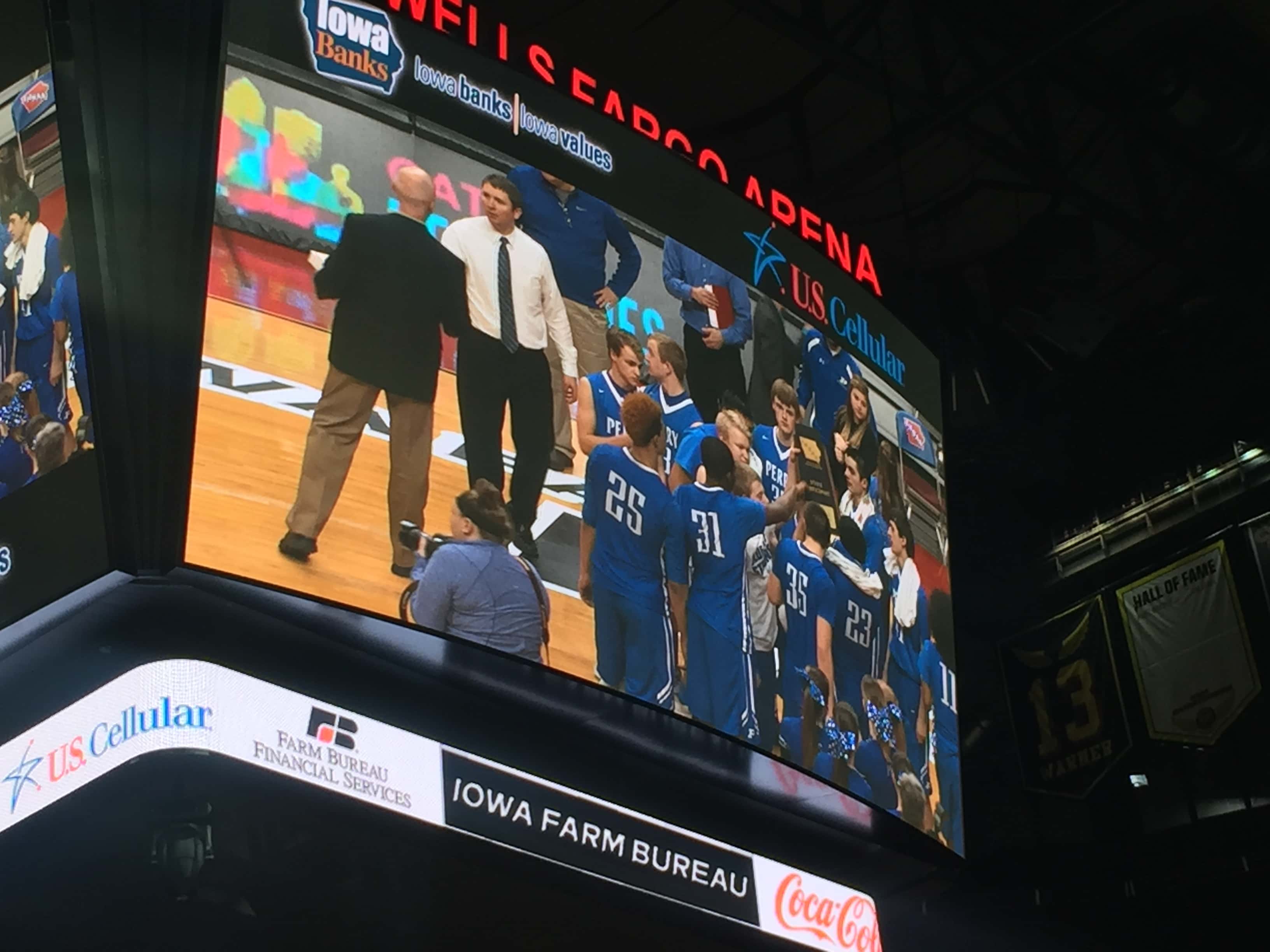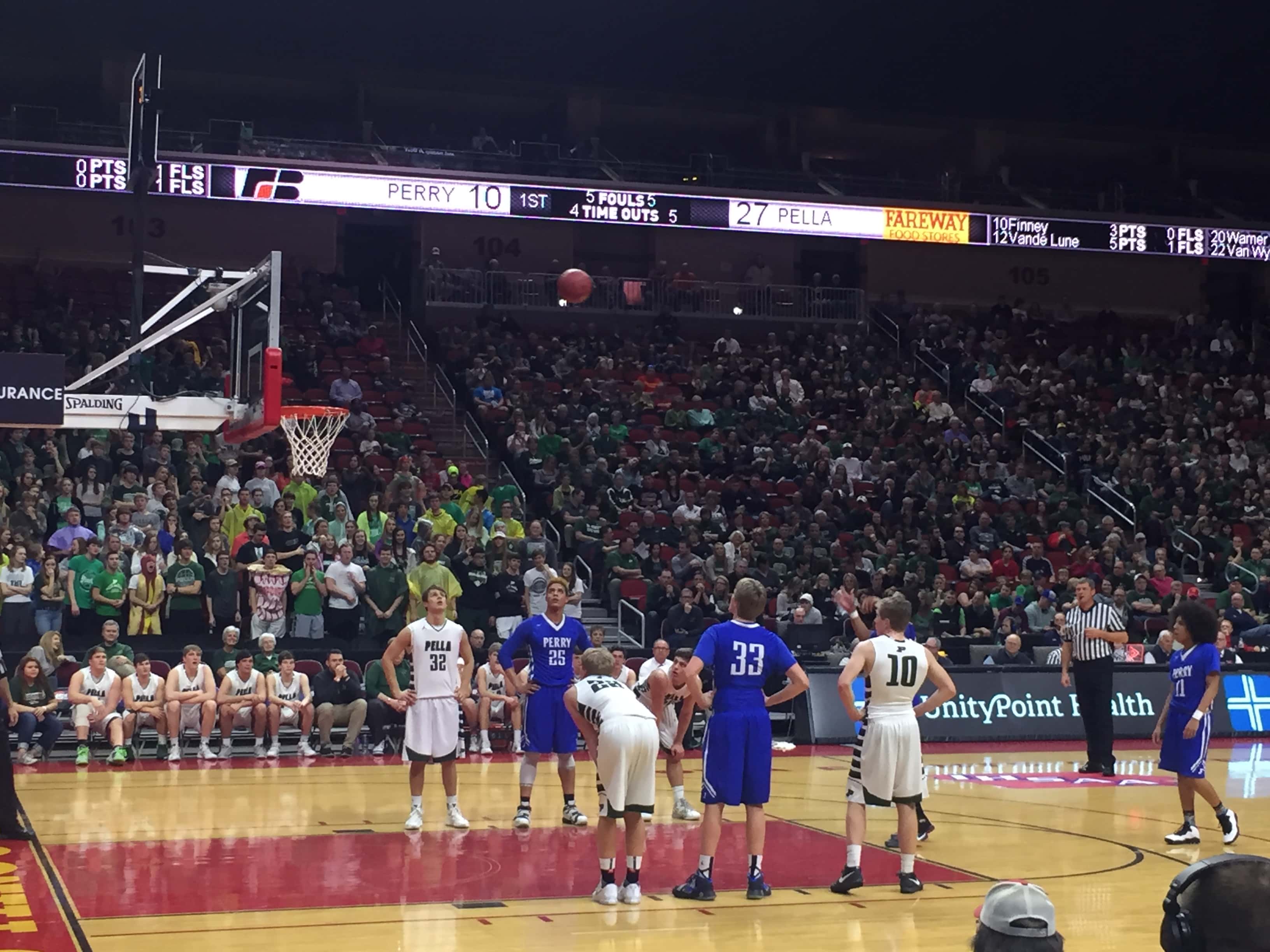 A sea of blue headed to the Wells Fargo Arena to cheer on the Bluejays but the second seeded Pella Dutch defeated Perry by a score of 54 to 94. The 2015-2016 season was the first time Perry advanced to the state tournament since 1988 and the end the season with a record of 15 and 10.