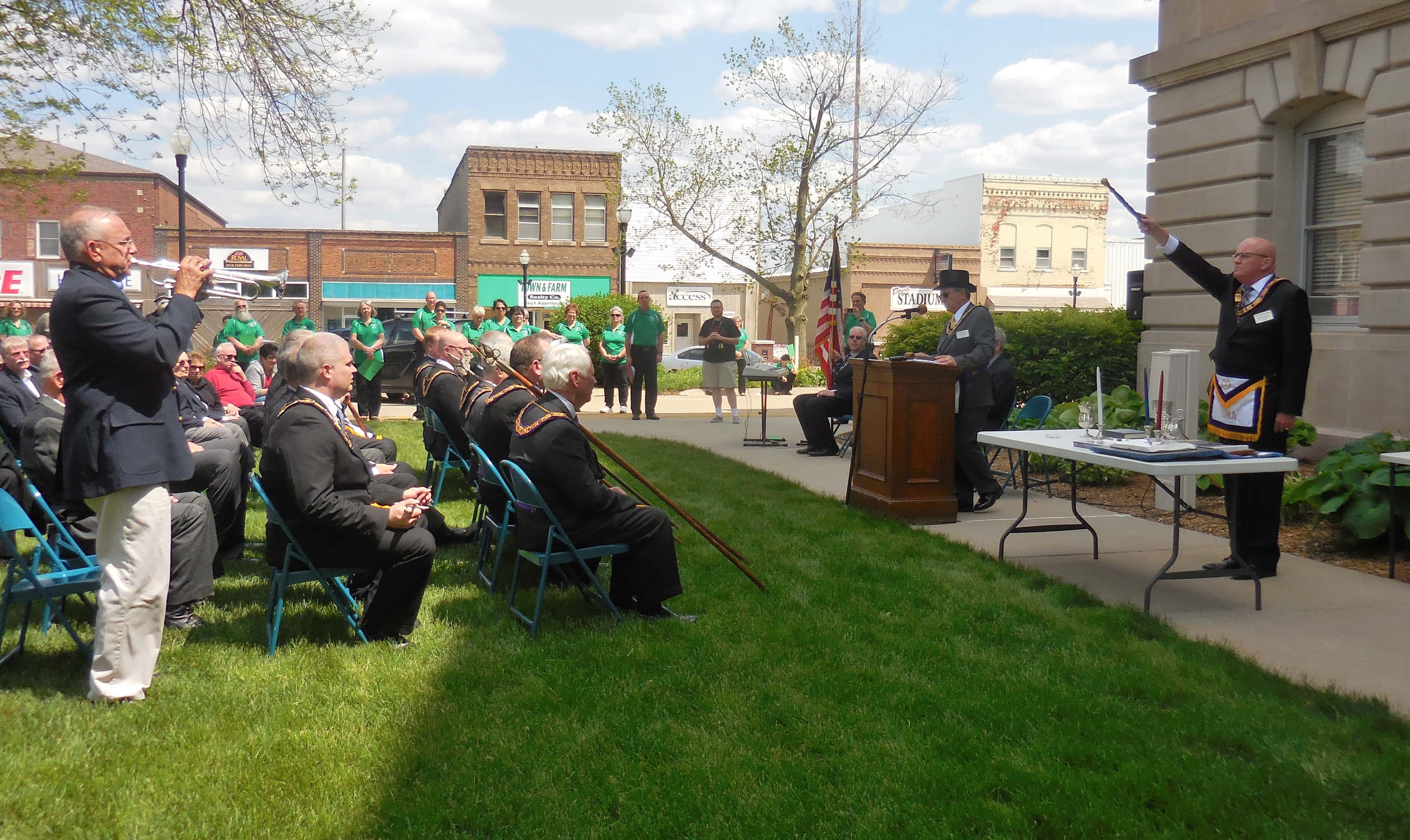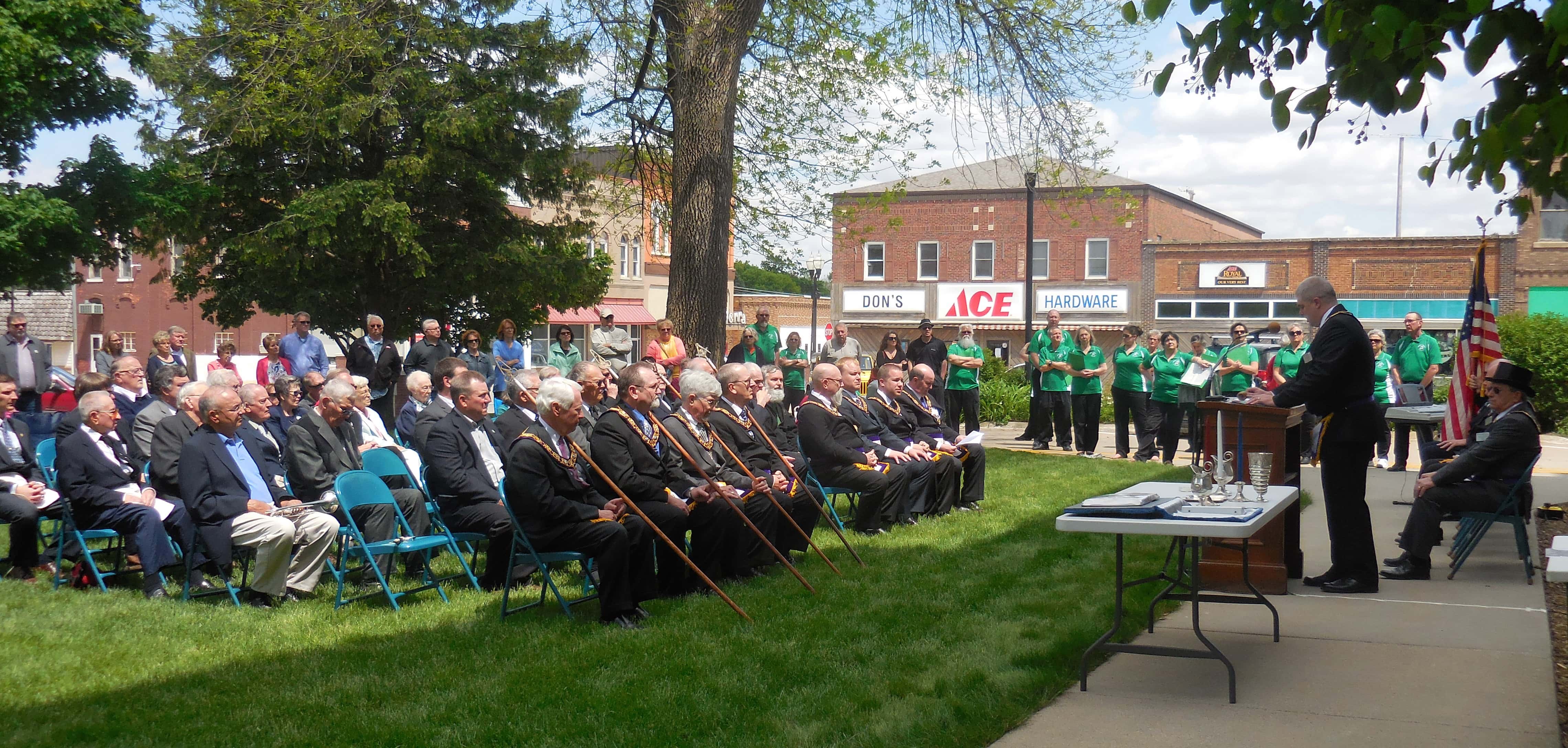 Officers and members of the Grand Masonic Lodge of Iowa and the Morningstar Masonic Lodge of Jefferson conducted the ceremony. Grand Master Arthur Crandon presided over the program and lead several rituals such as the three “tools” of the masons to lay a cornerstone of a building with the stone being square, level and plum.
