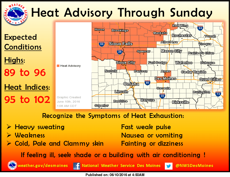 The forecast shows high temperatures in the mid to high nineties for the next several days, with a slight chance of rain and storms Sunday night and into Monday.