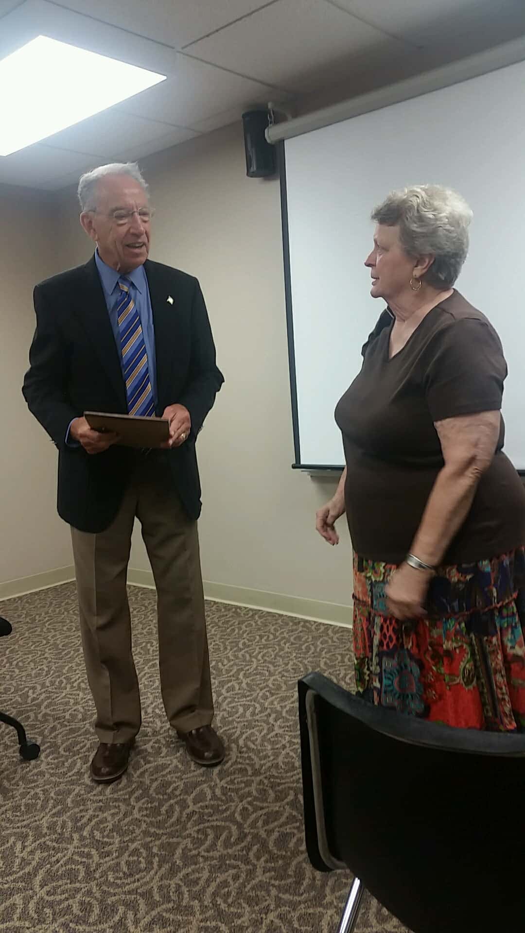 The visit was part of Grassley’s initiative to visit all of the state’s counties. “When I’m not in Washington D.C., most people know I like to have question and answer sessions with people in different environments, so I can cover 99 counties each year — some are meetings like this where it’s an open town meeting that anyone can come to.”