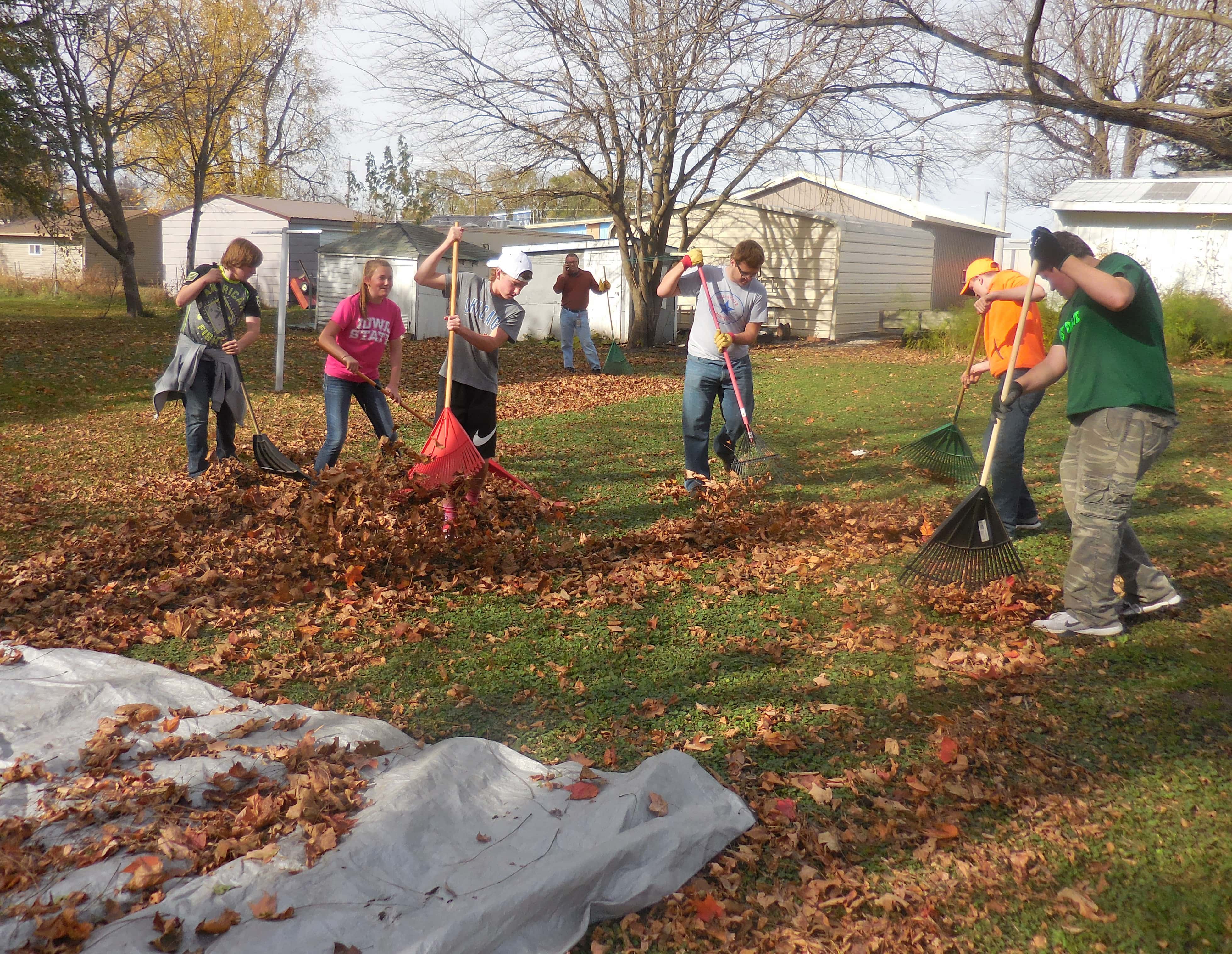 Students and volunteers were out raking leaves from noon to 3:30pm.