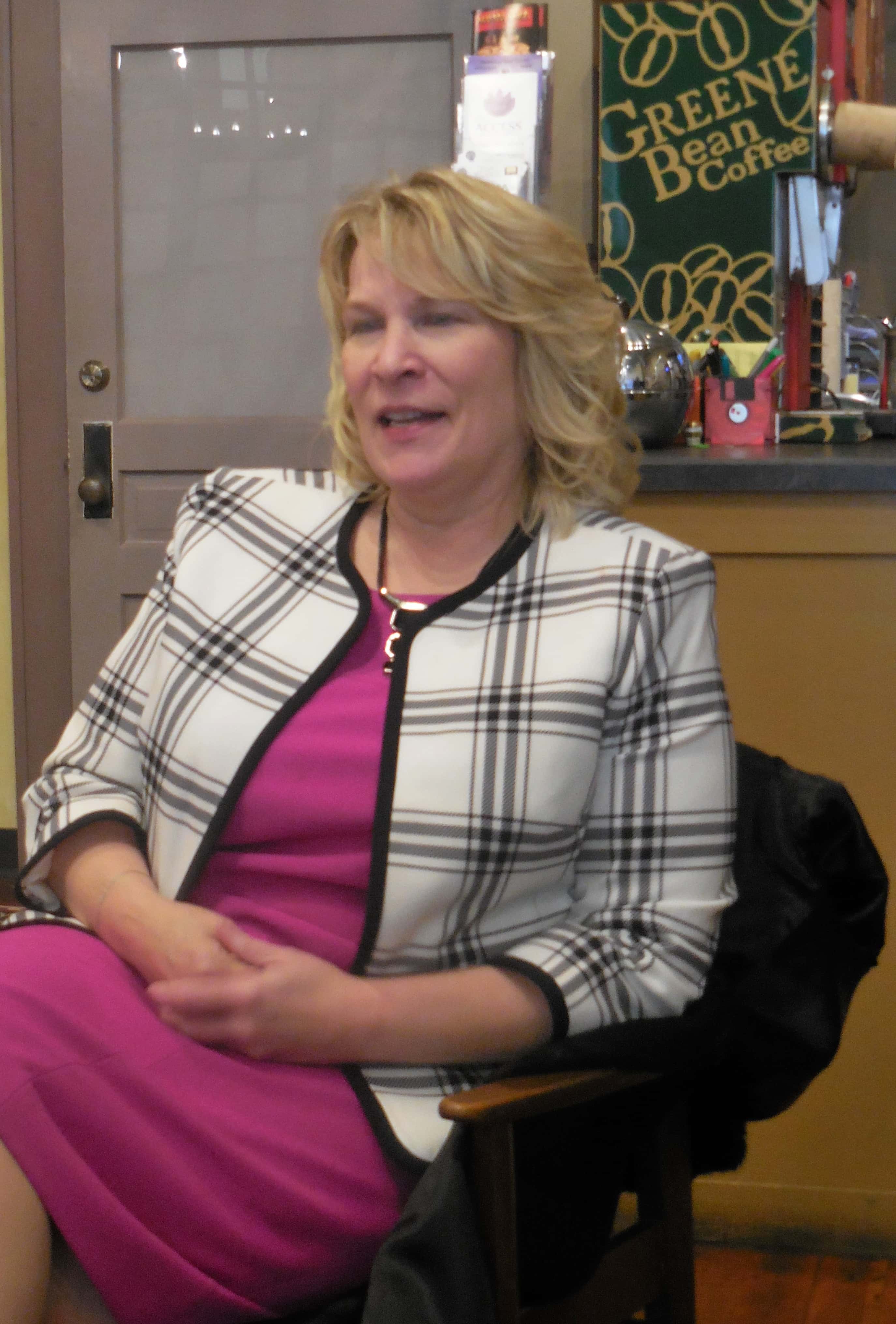 Kim Weaver talked about several issues with about a dozen people who attended the meet and greet event at Greene Bean Coffee. She wants to expand Medicare coverage to include nursing homes to help lessen the burden on state governments. She also wants to expand the American Vista Volunteer program and apply it to decrease and forgive student loan debt. Weaver added that parents with parent plus loans could also volunteer in their communities to help reduce their loans as well.