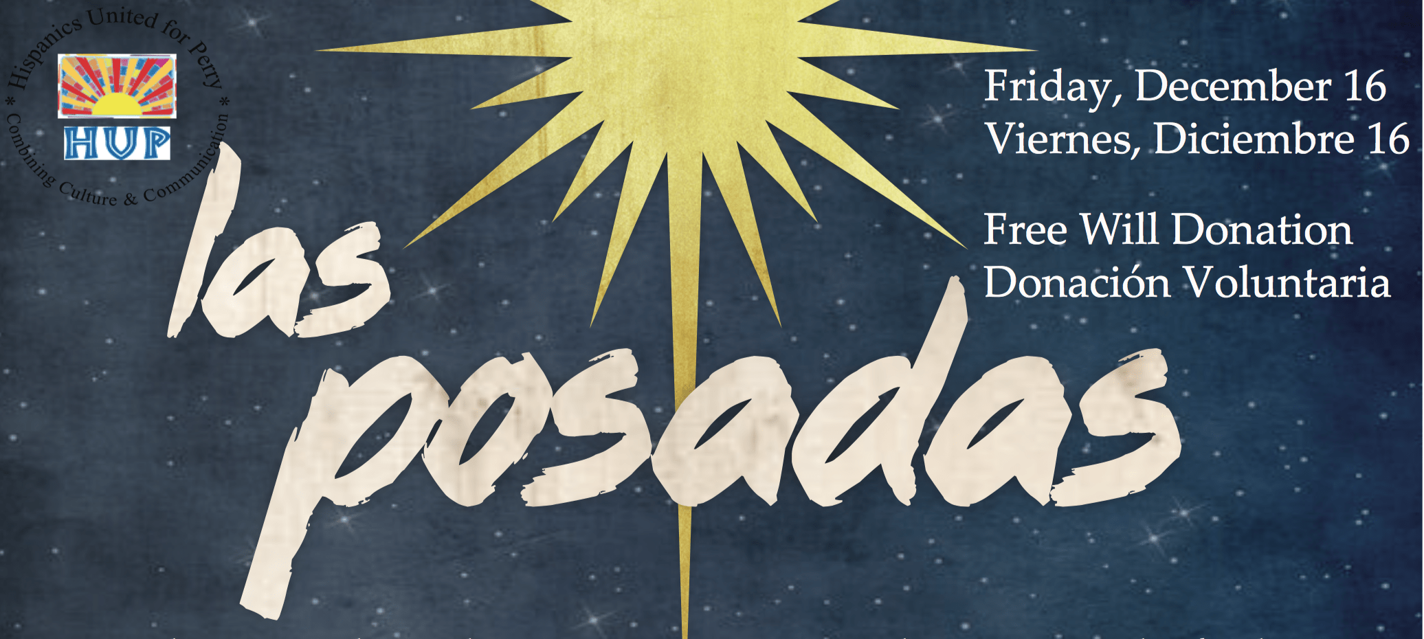 The traditional celebration starts with an ecumenical service at the First Christian Church at 6pm. Attendees will then go on a procession on 2nd Street while caroling and looking for shelter like Mary and Joseph when trying to find a place to birth baby Jesus. It ends at the First United Methodist Church with dinner and celebrating.