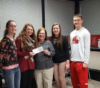 Students presented a $330 check to RSVP 55+ Greene County Coordinator Kristie Hurley for their Lots of Socks program. NHS held a bake sale at the local Fareway and Hy-Vee stores. RSVP 55+ collects various youth sizes of socks, plus baby wipes, diapers and pullups for less fortunate children in Greene County.