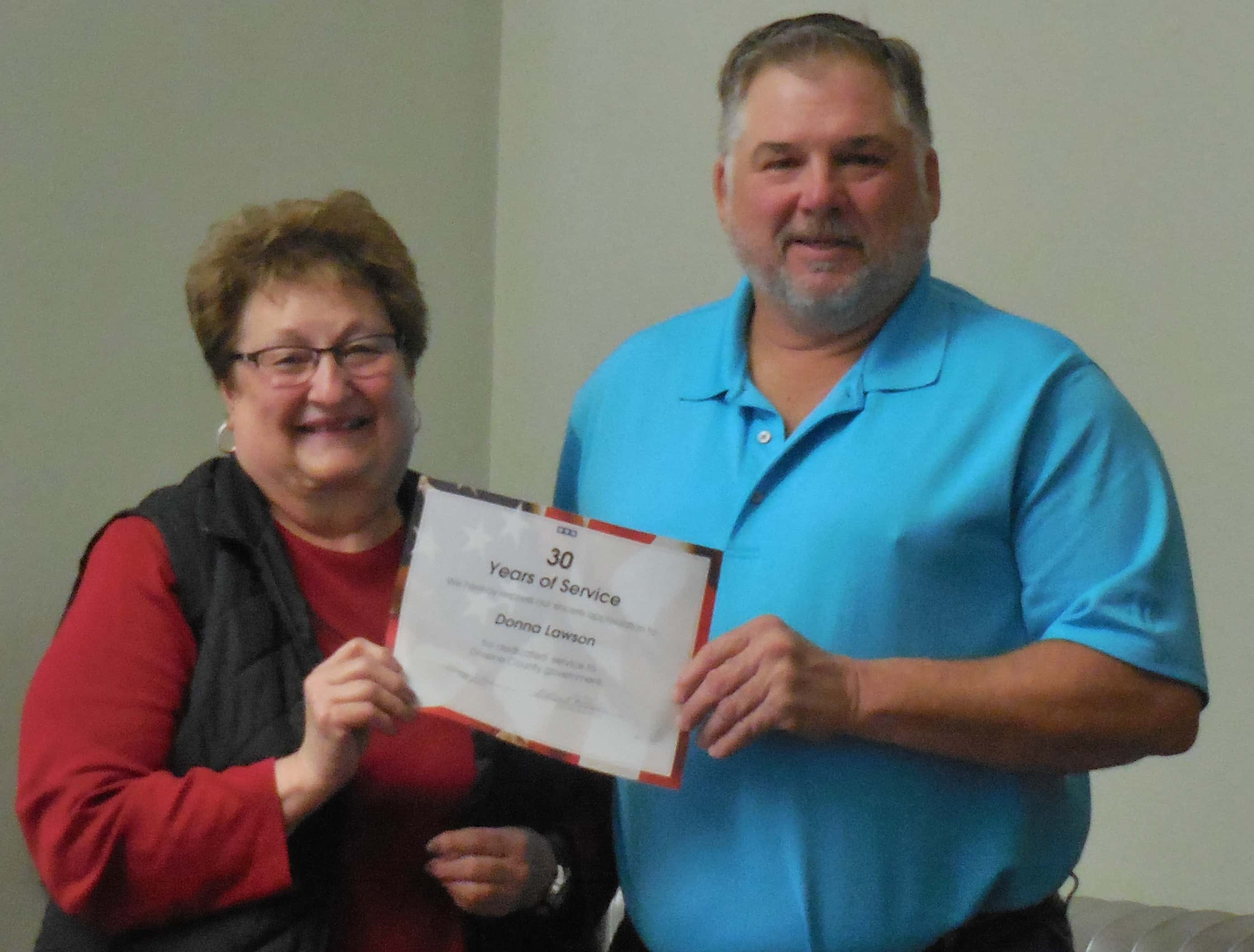 The Board then approved the first reading to set 20 ordinances for the Greene County Code of Ordinances finalization, as well as the County Treasurer’s investment report of $4,822,818 and issuing 160 driver’s licenses in February. Treasurer Donna Lawson was also recognized for her 30 years of service as treasurer.