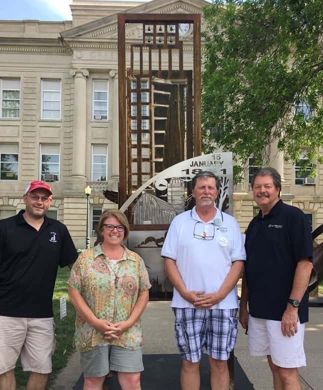 The top three sculptures for Jefferson Matters: Main Street Ring Out for Art contest were also announced. The top prize of $2,000 from Home State Bank went to “We Are…Greene County” by Shane Olson and Jolene Peters. Second place and $1,000 went to Anna Modeland of Boone for “The Catch”. Receiving third palce and $500 was Zachary Bowman’s “Iowa” sculpture.