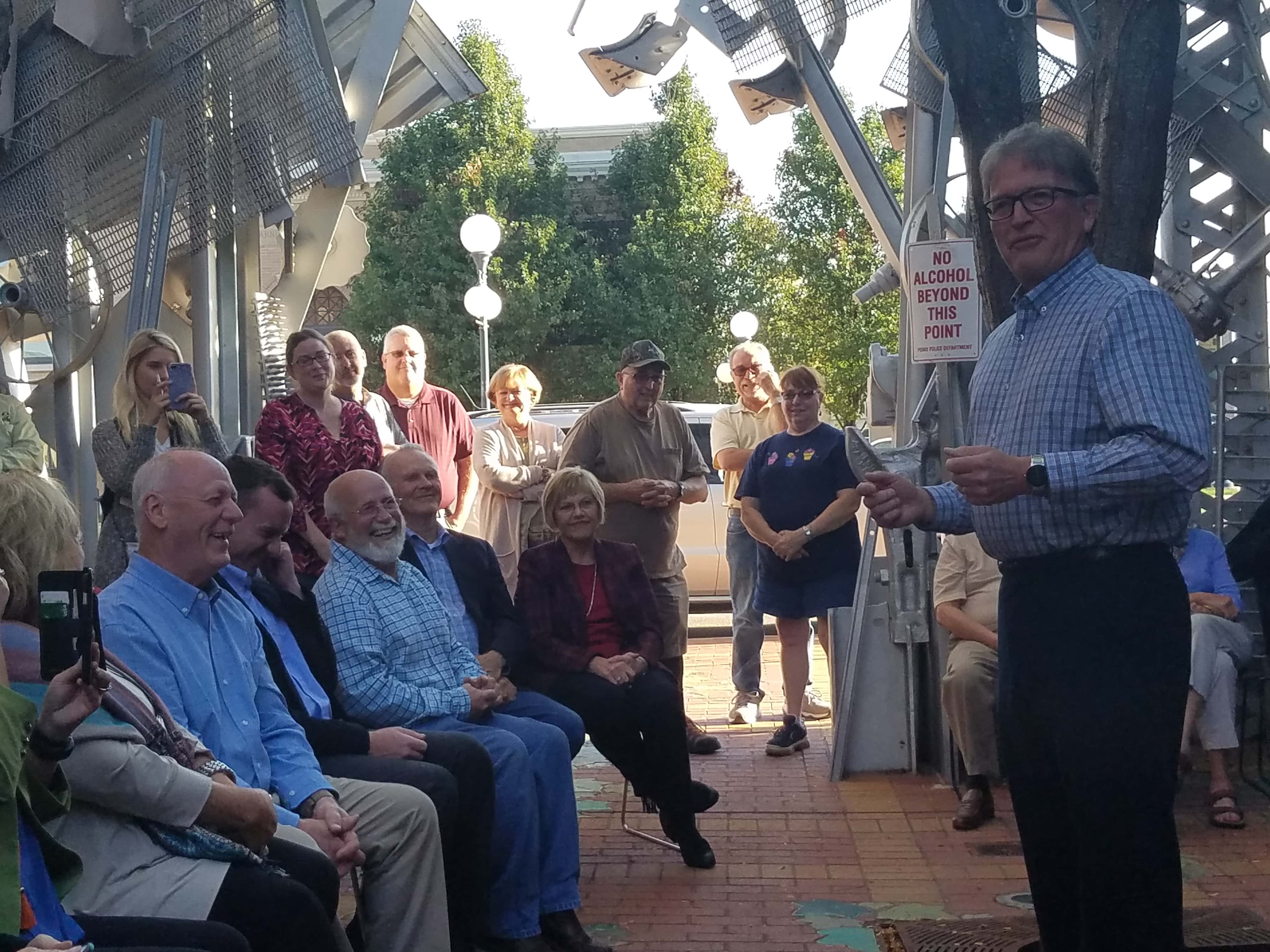 Palmer was followed by the sculptor of Walstrom’s relief, Rick Stewart, who was also responsible for the majority of the other reliefs on the Wall. After Stewart spoke of the friendship he quickly developed with his subject, the newest relief on the Wall of Witnesses was unveiled. Mayor Jay Pattee, a long-time friend of Walstrom, then got up and talked about the honoree’s life and experiences.