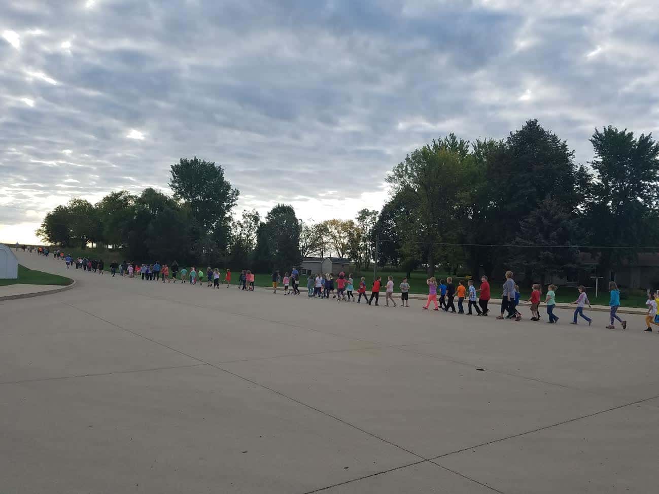 About 500 Greene County Elementary students and staff kicked off the day with their one-kilometer walk around the elementary school building in Jefferson. School Nurse Mary Pedersen says the staff are great role models for students by showing them the importance of being healthy by staying active. She adds that most teachers talk to their students before and after the walk about being healthy and playing for at least 60-minutes a day, choosing healthy snacks and washing their hands frequently.