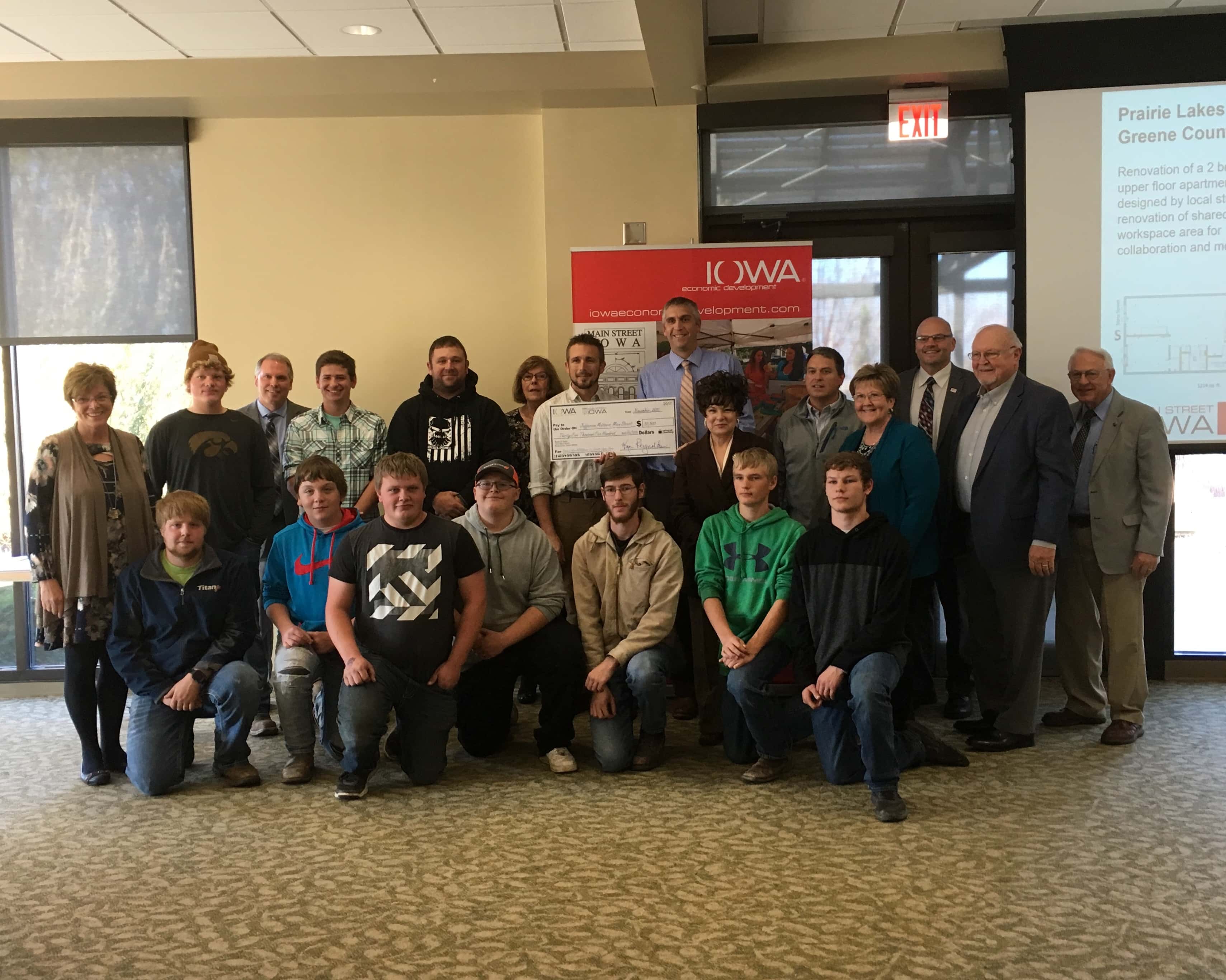 Iowa Economic Development Authority and Main Street Iowa announced a $35,500 Challenge Grant for the third floor interior project of the Prairie Lakes Area Education Agency building on the north side of the downtown square. The match came from the Prairie Lakes AEA Board of $25,000 and another $10,000 from Greene County Development Corporation.