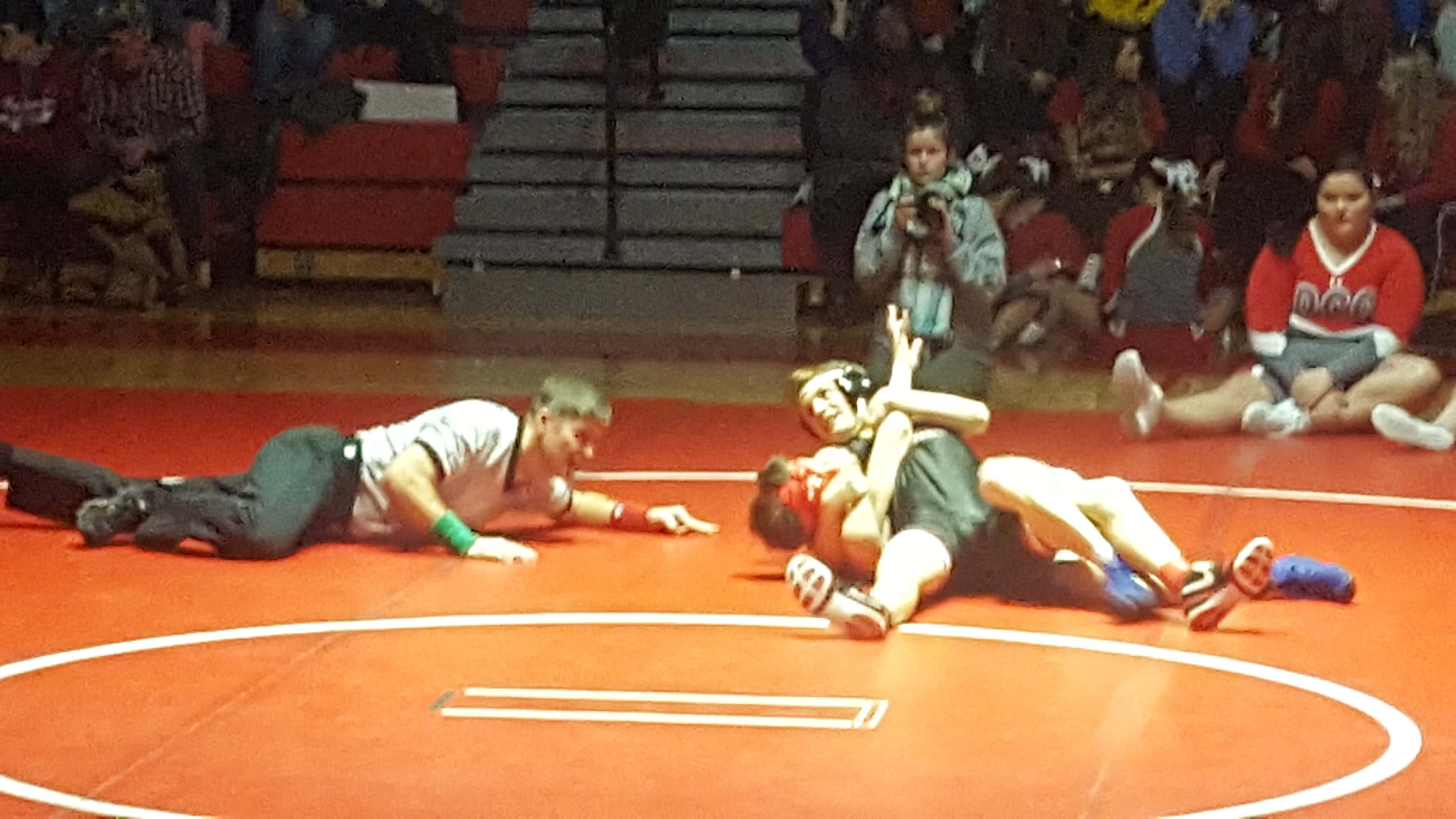 One of the highlights for ADM came in the first match of the evening. Freshman Cole Williamson recorded a first-round pinfall over DCG Dakota Arends in 1:24. ADM wrestling coach Chris Hatchitt said Williamson is new to the sport of wrestling. “(This is the) first year he’s out for the sport, and he’s picking it up.” Hatchitt said, “He’s buying into the hustle and effort, physical and aggressive and he’s getting after it. He’s learning, and he’s doing a good job. He’s improved tremendously from the first two weeks of practice.”