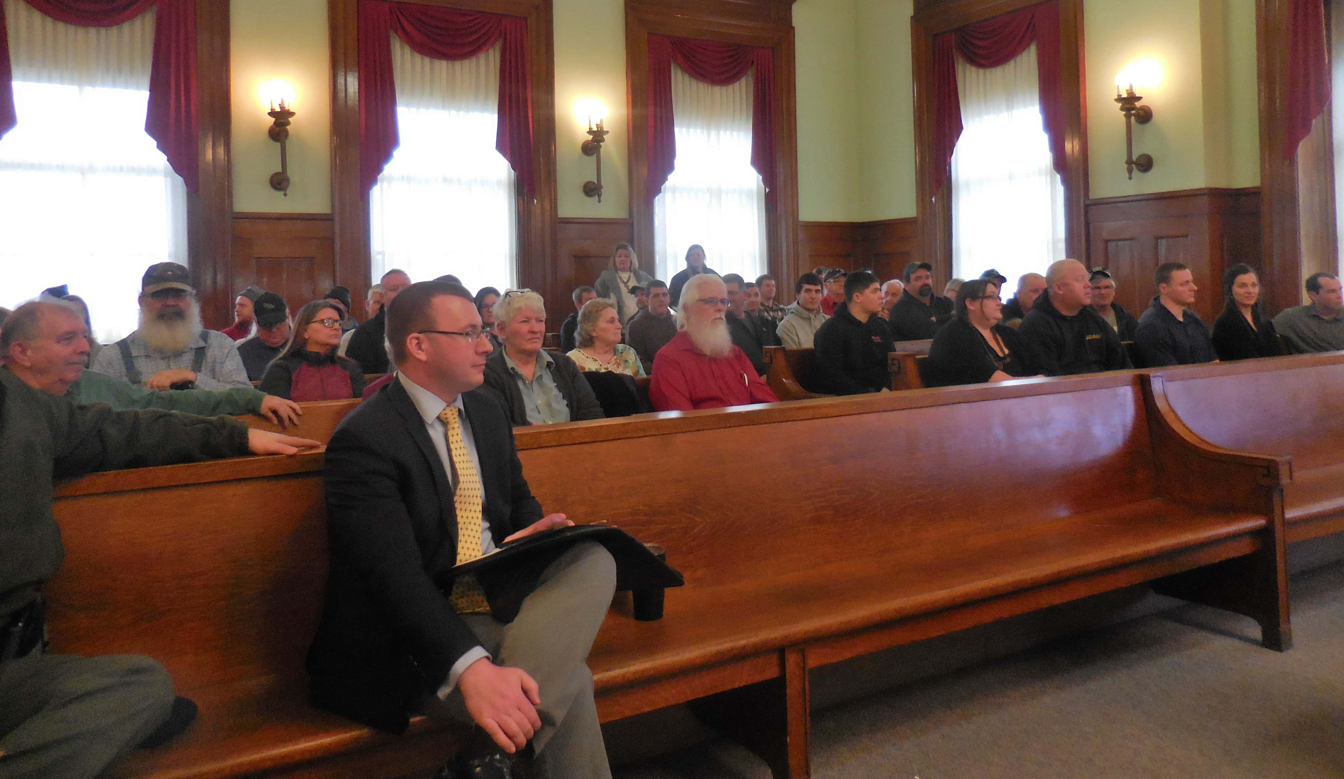 One of the more contentious public hearings for a new hog confinement project was held Monday in the Greene County Courthouse courtroom.