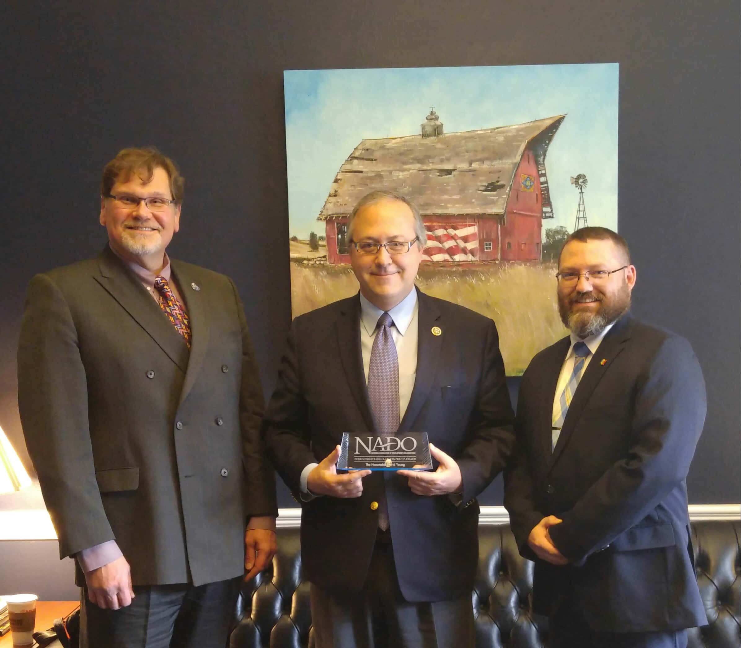 U.S. Congressman David Young was recently honored with a 2018 Congressional Partnership Award from the National Association of Development Organizations (NADO). The award is given for outstanding leadership in federal programs supporting regional economic and community development.