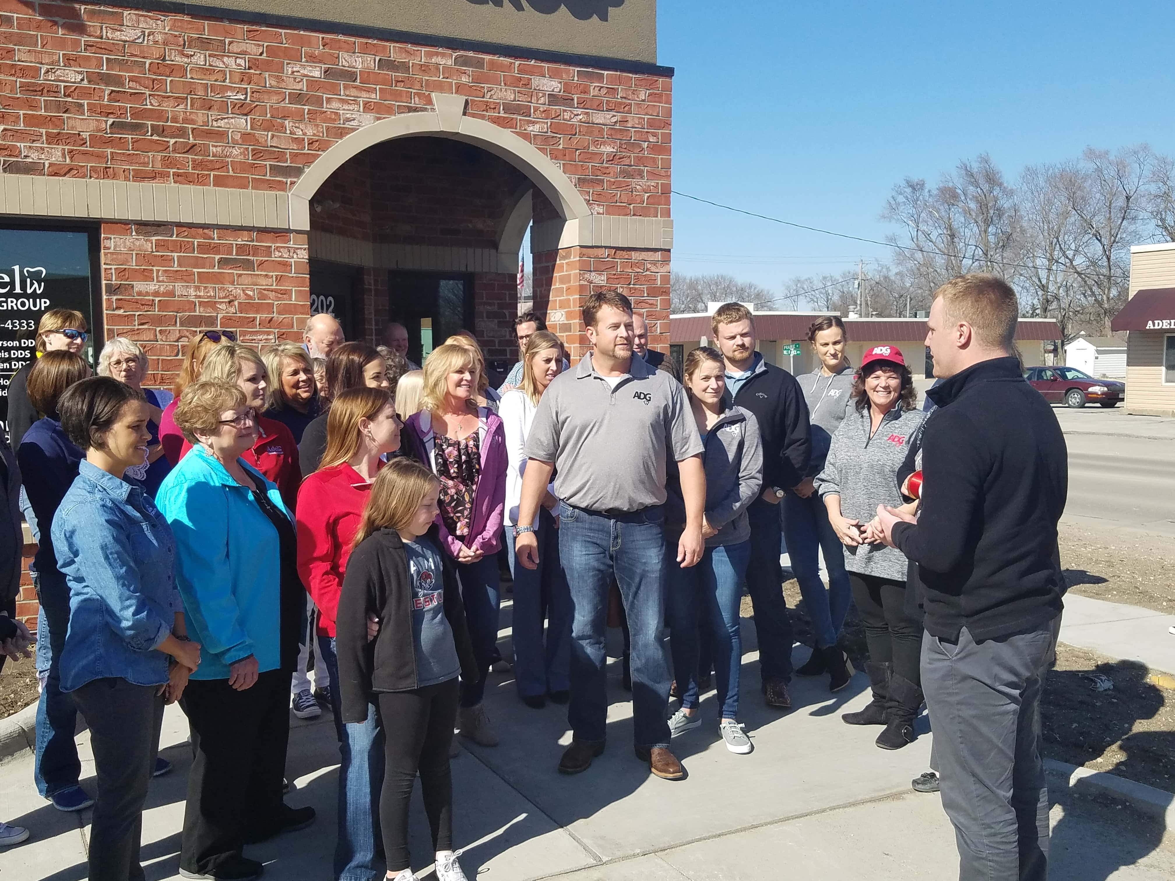 After a brief social time, Chamber Director Deb Bengston brought everyone outside to take part in the ceremony. Adel Dental Group Owner Eric Anderson was handed the ceremonial scissors and did the honors of cutting the ribbon. Chamber Chairperson Marc Riley then gave a brief speech to welcome the business to the City and the Chamber. After that, Anderson thanked everyone who had a part in bringing the business to Adel, giving specific appreciation to the West Des Moines office.