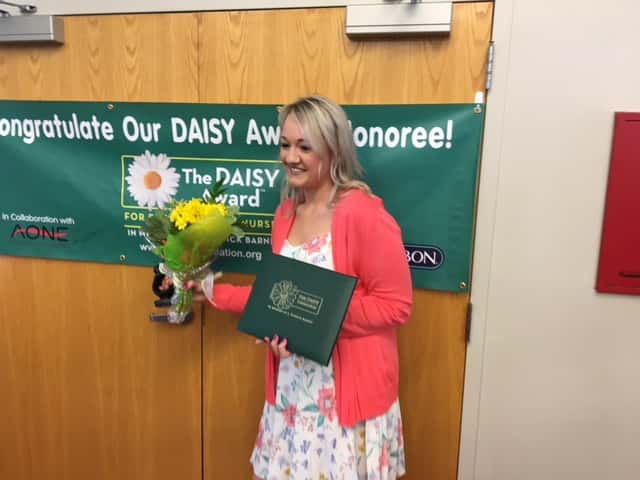 A young nurse was honored for her care Thursday afternoon at Guthrie County Hospital’s second annual DAISY Award reception. Katelyn Thompson was chosen among the six nominees to receive the award.