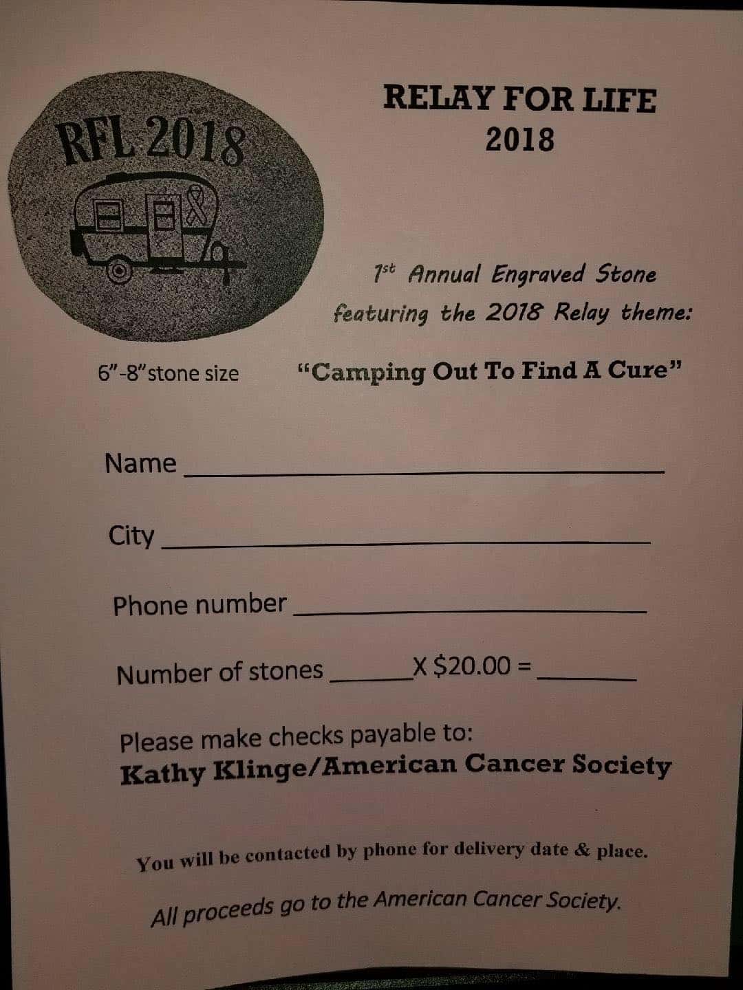 Relay For Life of Guthrie County is currently in the midst of final preparations for this year’s annual relay. The organization is breaking in another new opportunity to help raise funds in the fight against cancer. They will be selling engraved stones with this year’s theme and logo etched in.