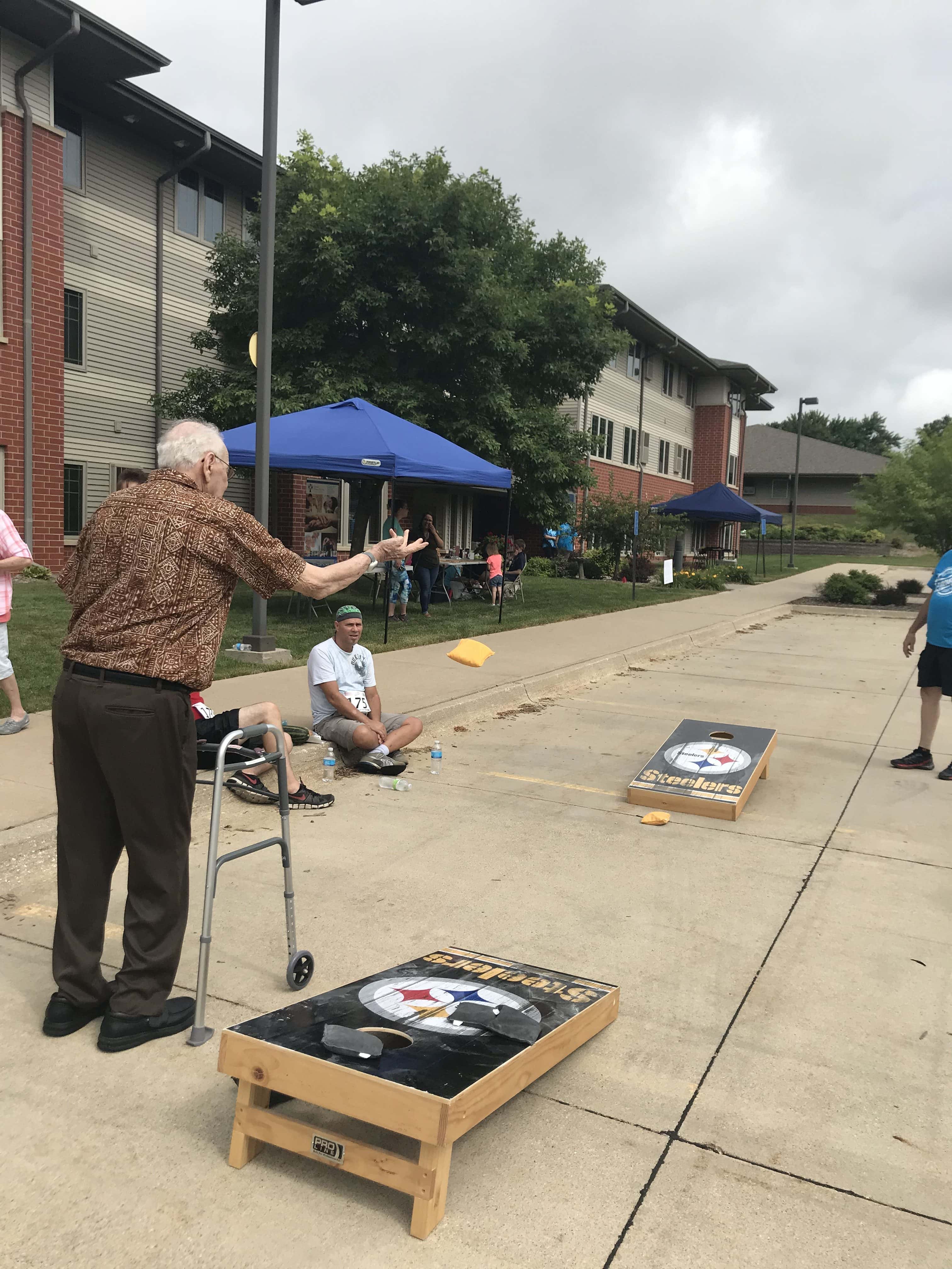 Pritzel said there were several great moments from the day, but one that stood out to her was when Colleen Bice, a resident of Spring Valley who loves to dance, invited Calvin Sass to dance with her, as the 17-year-old Perry High School Cross Country runner taking part in the 5K was finishing his run. Other highlights included: the 1928 “pace car,” which started the race; some competitive games of “corn hole” hosted by Spring Valley residents; a community performance of the “Hokey Pokey”; and a presentation on Perry jazz musician Roy “Snake” Whyte.