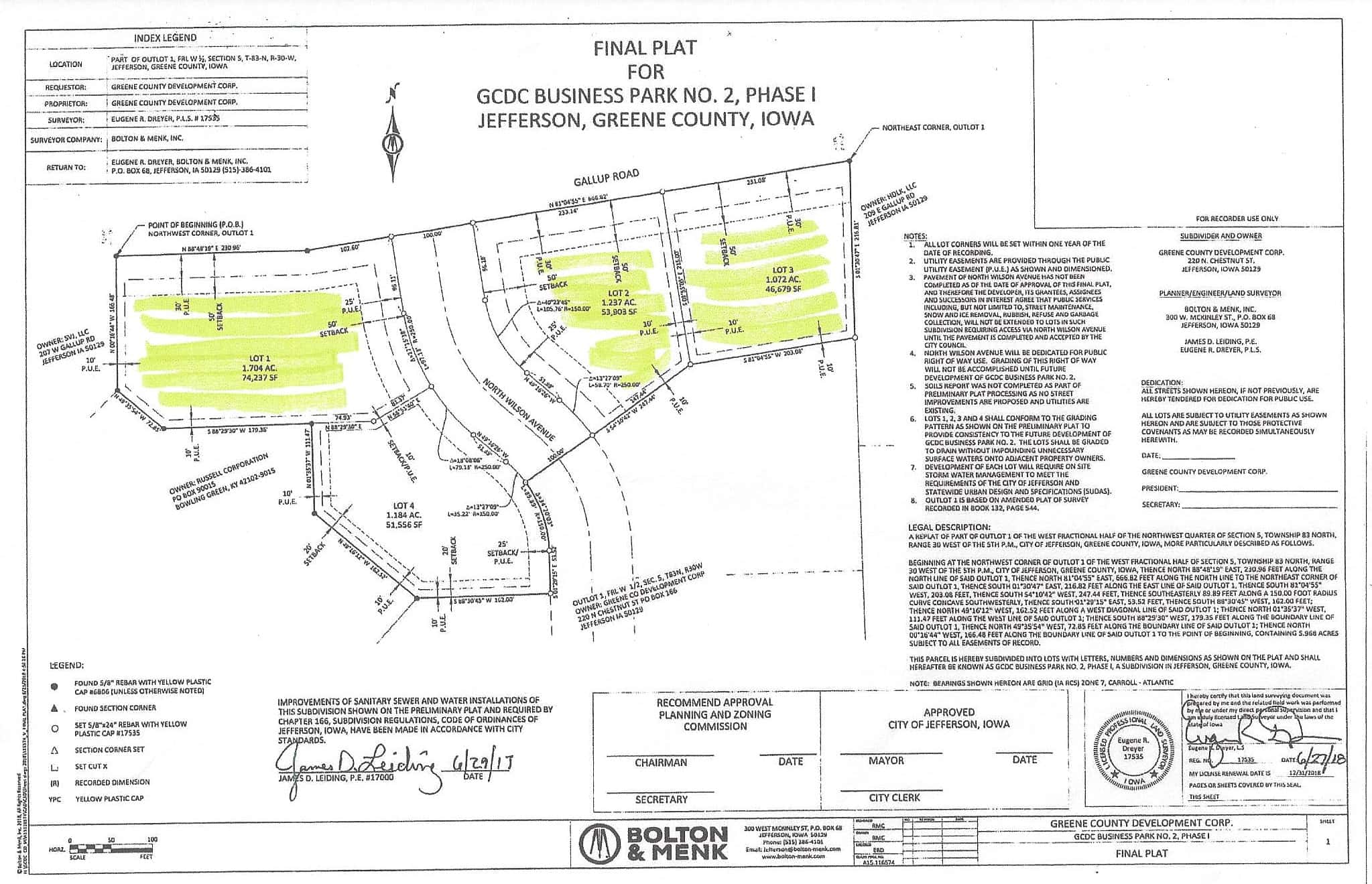 Paxton adds that if any business is interested in the other available lots in the east business park, to call him at 386-8255, email at ken@greenecountyiowa.com or stop by Jefferson City Hall.