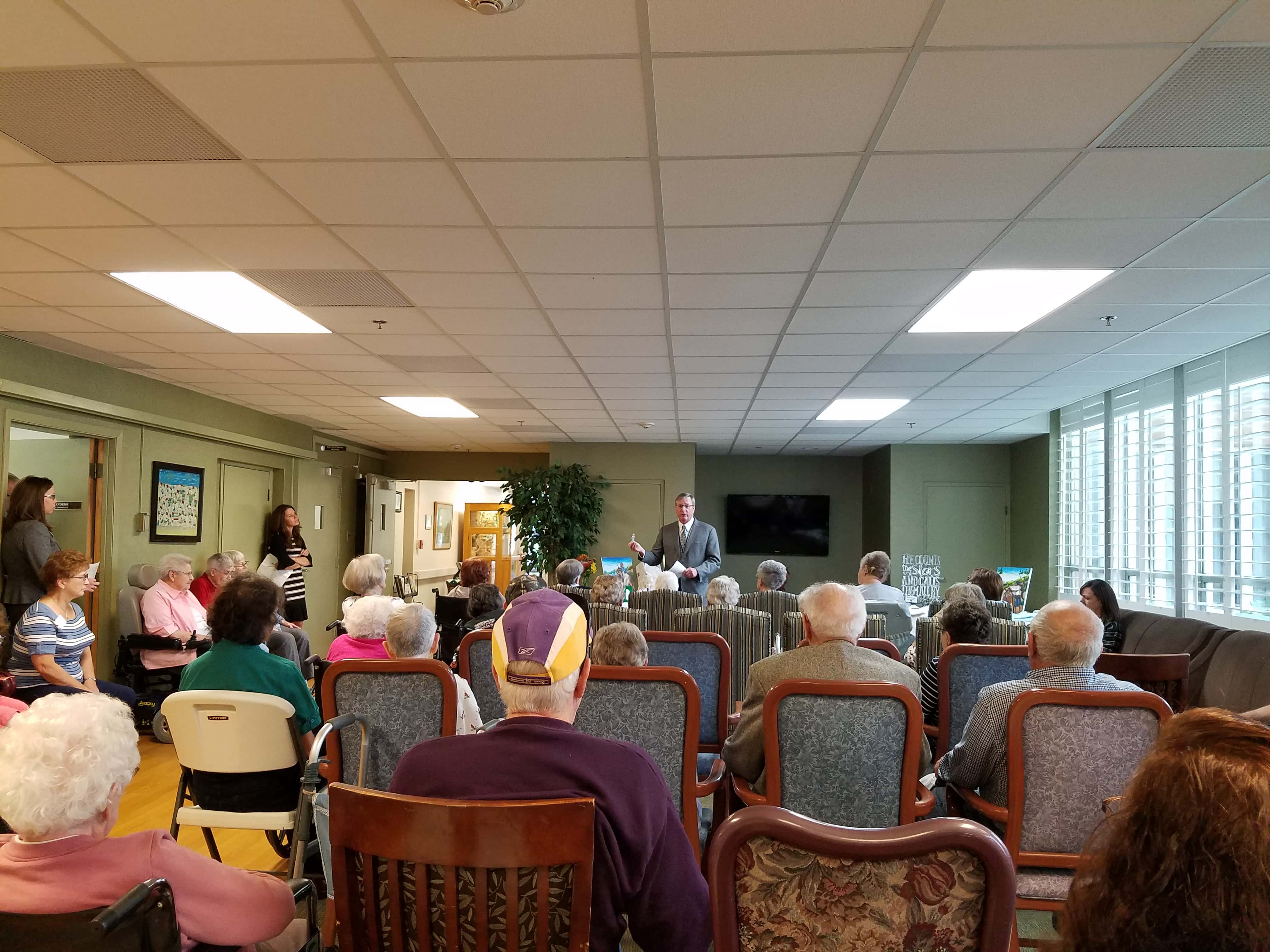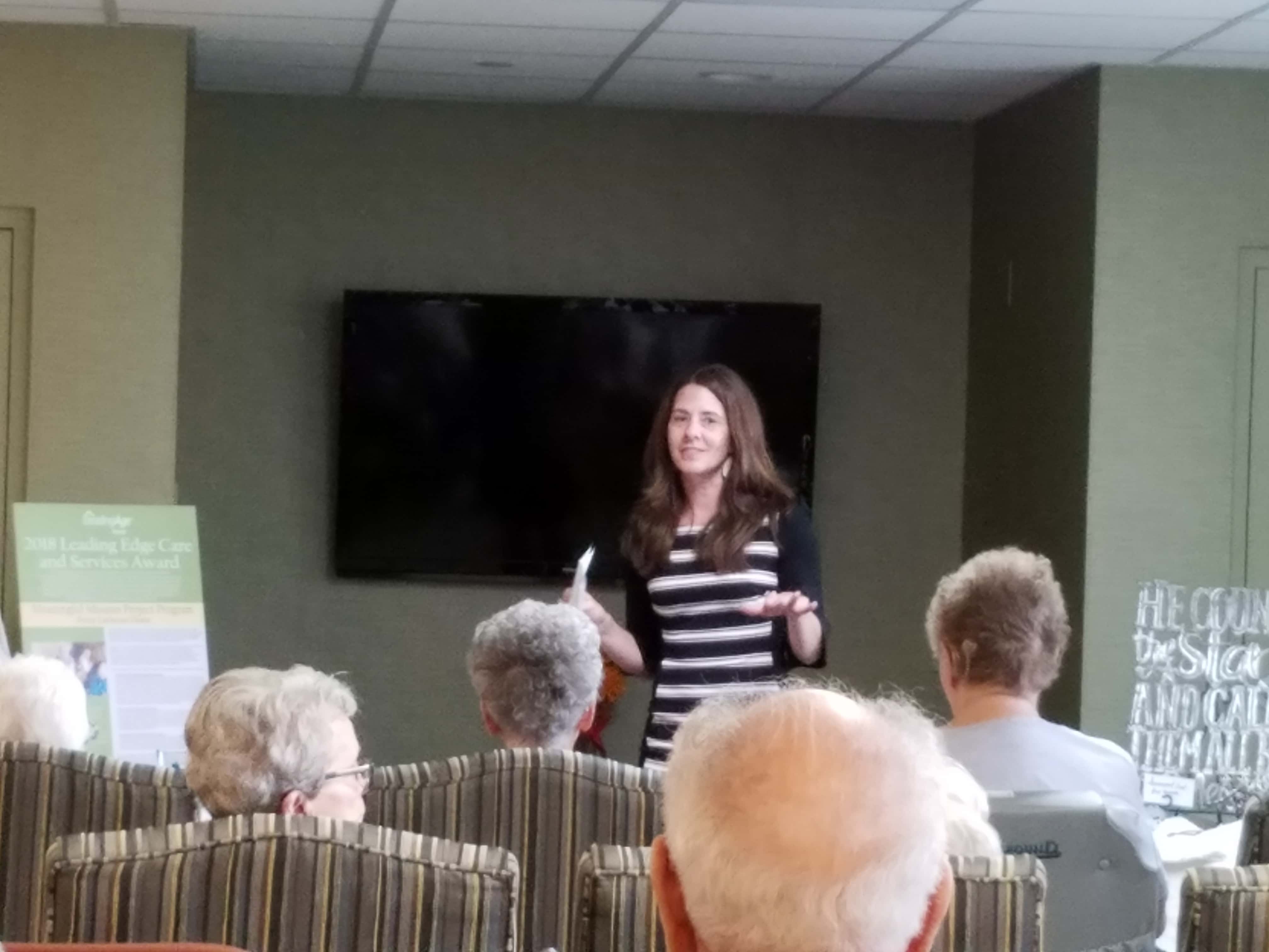 Reverend Max Phillips, the CEO of Perry Lutheran Homes, got the program going by explaining the reasons behind why they received the prestigious award. The PLH Meaningful Missions project was recognized for the services provided that both benefit residents and serve as a model of innovation. LeadingAge Iowa President Shannon Strickler then got up and congratulated the PLH staff and residents on the award, saying it was very deserving. She then presented the award, and also mentioned that PLH Administrator Melissa Gannon had recently graduated from one of their programs so that she can better serve the residents.