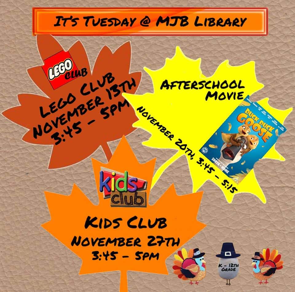 Guthrie Center residents both young and old can escape the chillier weather and attend a variety of events this week at the Mary J. Barnett Memorial Library.