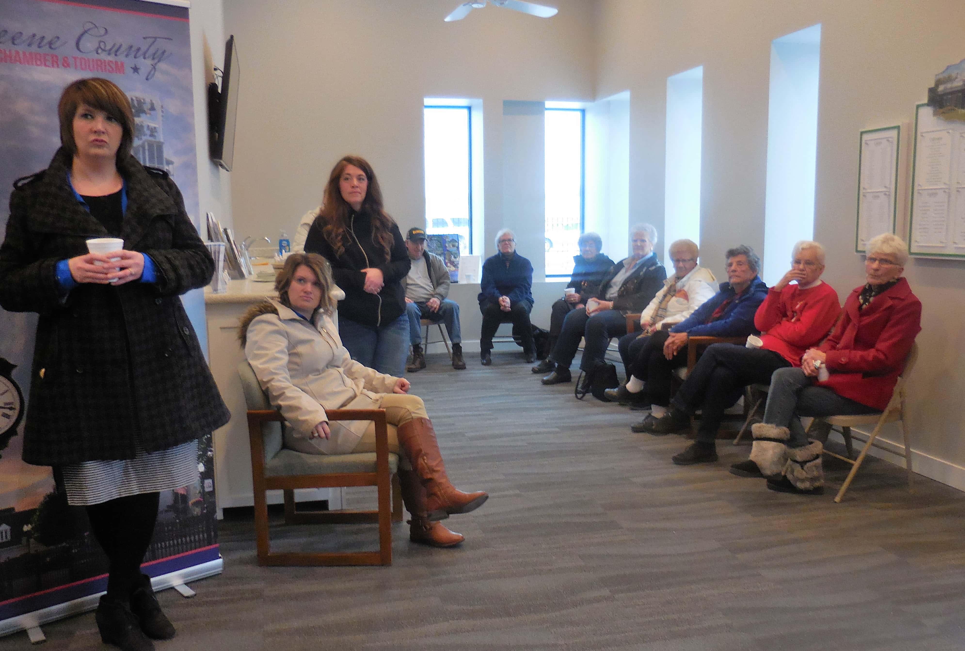 A small group heard an update about a building project for the Animal Protection and Education (APE) Agency in Paton.
