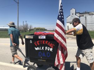 Army veterans Jeff and Rick Harrison walked through Guthrie County on their way from Naples, Florida to Seattle, Washington for dad. Not just their father though, a veteran who recently passed away, but to also raise awareness for those who suffer from dementia, Alzheimer’s disease, and depression.