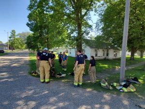 The fire crews gathered at an abandoned house in Dawson, which had been provided by its current owner for use in the training. Assistant Fire Chief Brian Eiteman said they were able to practice search and rescue techniques as well as some interior attacks. The Fire Department previously had a training exercise on April 20th in Perry, and Eiteman said that getting two opportunities for live house fire training has been invaluable. “Live fire training is so rare. We’re going to get those guys acclimated to actually being in a fire situation. (The) more you learn in the heat of the moment, the more you’re going to remember for future fires. Those two in a couple months is a rarity. You know it’s been probably two or three years since the last time we’ve had a house to burn. Other than that we use trailers, and they don’t have the same feel as what a house does.”