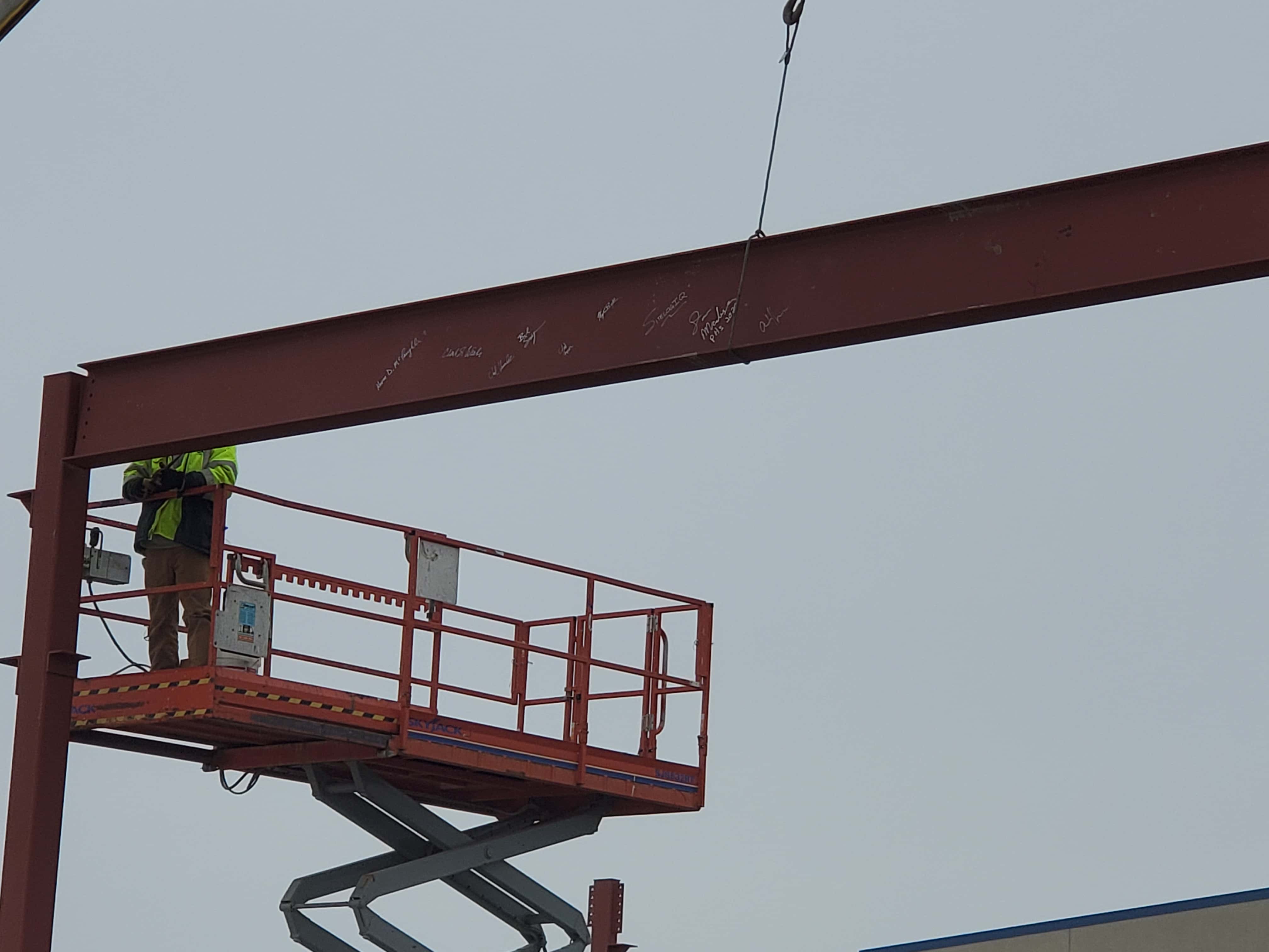Wicks said it was a unique event to be part of, and he felt it was especially significant as the new building starts to take shape. “You know what? It’s a cool ceremony! I haven’t been part of that before, so we got a chance to sign our name on that beam. And hey, it really is a neat moment (and) it shows that things are progressing. Especially signing on a steel beam, it shows strength, it shows progress, and it’s really a cool thing for Perry Community Schools. We’re tickled!”
