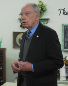 Close to 20 people attended a town hall meeting with U.S. Senator Charles Grassley at Art on State in Guthrie Center Tuesday.