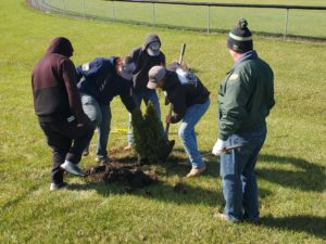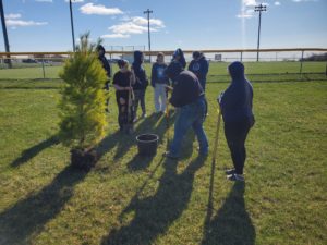 “So we have FFA members with us today, and some of my classes are with as well. The class I have right now is our plant science class. We’re actually learning about trees and how to tell what type of tree it is and some of the different characteristics and features. So I think it’s an add on to class for that class for sure, about what why we need to know about trees, and now we get to plant the trees. And so it’s kind of a full circle lesson for those students in plant science, and I think it’s important for my FFA members to get involved in the community. We like to do a lot of different community service events throughout the year, and this just adds to the portfolio of options to give students a wide variety of community service project experience.”
