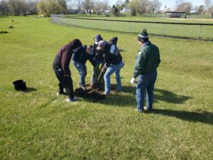 All the students got a chance to see how they should plant the trees, and then broke up into groups to get them all in the ground quickly and efficiently. Some pictures from the beginning of the morning can be seen below.