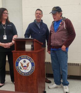 L-R: Guthrie County Veterans Affairs Coordinator Beth Watson, US Representative Zach Nunn and David Schachtner