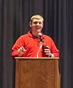 The day started with a free breakfast and a business vendor fair, with over 14 local businesses and organizations participating, to let teachers and staff know what is available in the community. Then during the program, Bringing Optimism and Opportunities to Students and Teachers (BOOST) Committee member Chris Deal talked about their organization that supports what teachers need and want in the district by raising over $400,000 in seven years at the annual BOOST Bash.