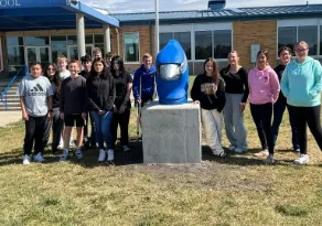 Sculptures were painted, then installed at Perry Elementary, Middle, and High School this past Tuesday. The sculptures are funded by the Perry School Foundation, The Homer Perkins Estate, The Akkerman-Snowgren Trust, The Blanche & Millard White Foundation, The Bock Family Foundation, and 100+ People for Perry.