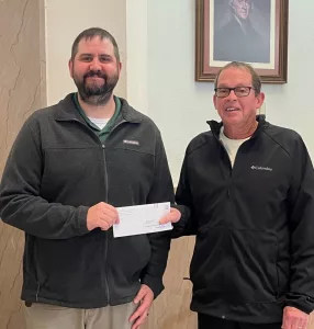 During open forum, Jefferson Mayor Craig Berry made a donation on behalf of the Cyclists of Greene of $3,500 to Greene County Conservation Board for the Raccoon River Valley Trail project.