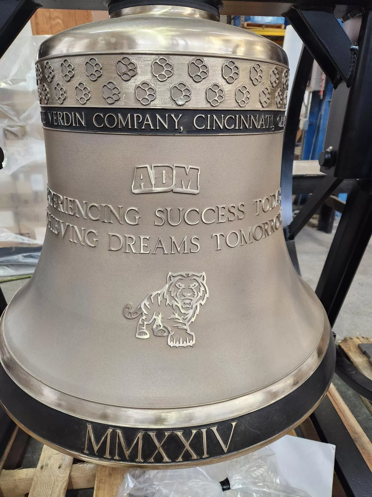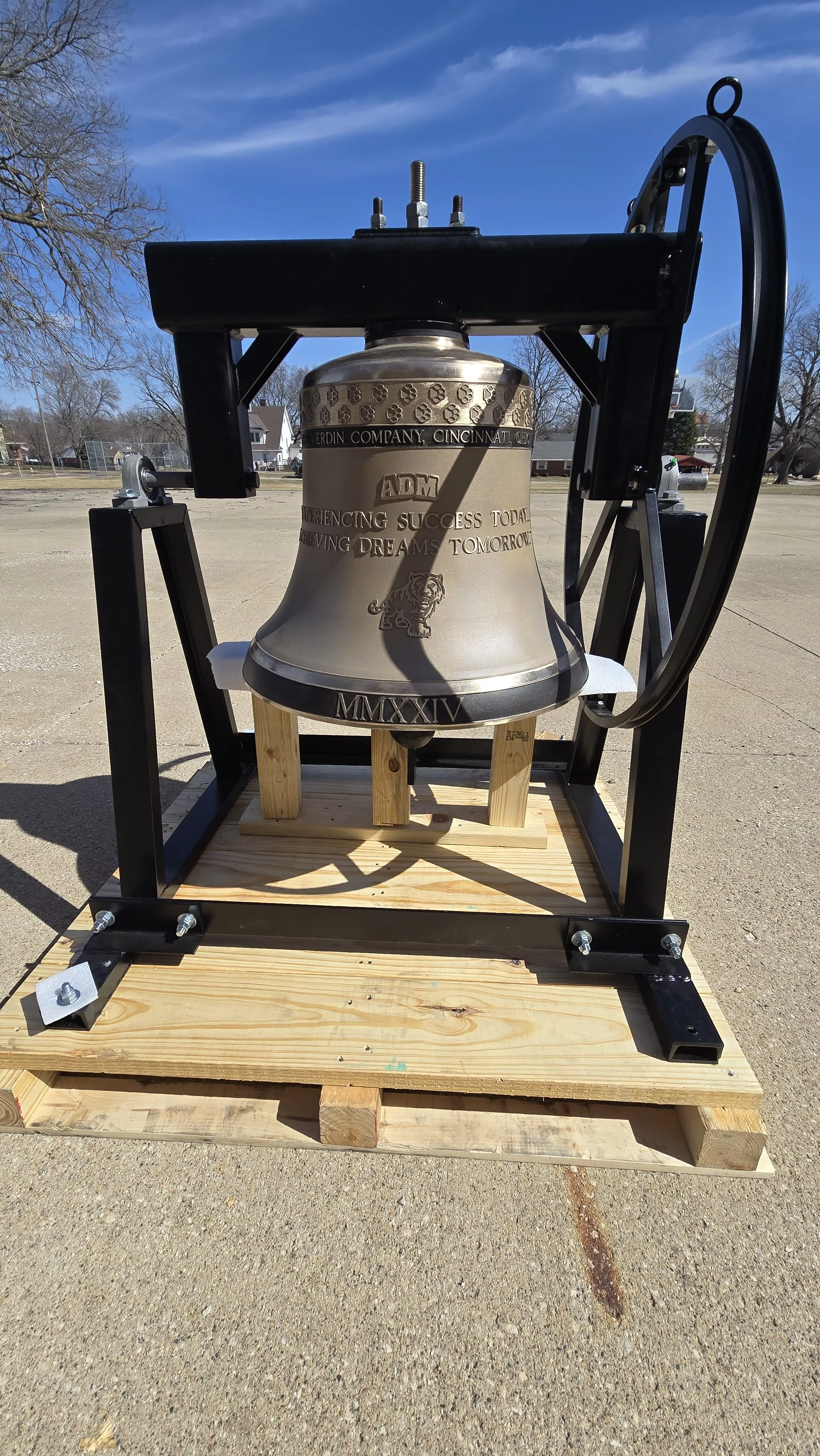 Peters confirms that the new bell will feature tiger pawprints along the top, along with the slogan of “Once A Tiger, Always A Tiger,” followed by a 3D Tiger Head logo in the middle, and the bottom will say “Adel-DeSoto-Minburn High School.” He adds that on the back of the bell will include the quote “Experiencing Success Today, Achieving Dreams Tomorrow,” with a walking tiger beneath that. Peters is suggesting to the board that since ADM is building a new high school, set to open in 2027 and a new athletic facility in 2032, he would like a way to make the bell mobile, instead of finding a permanent spot to install it.