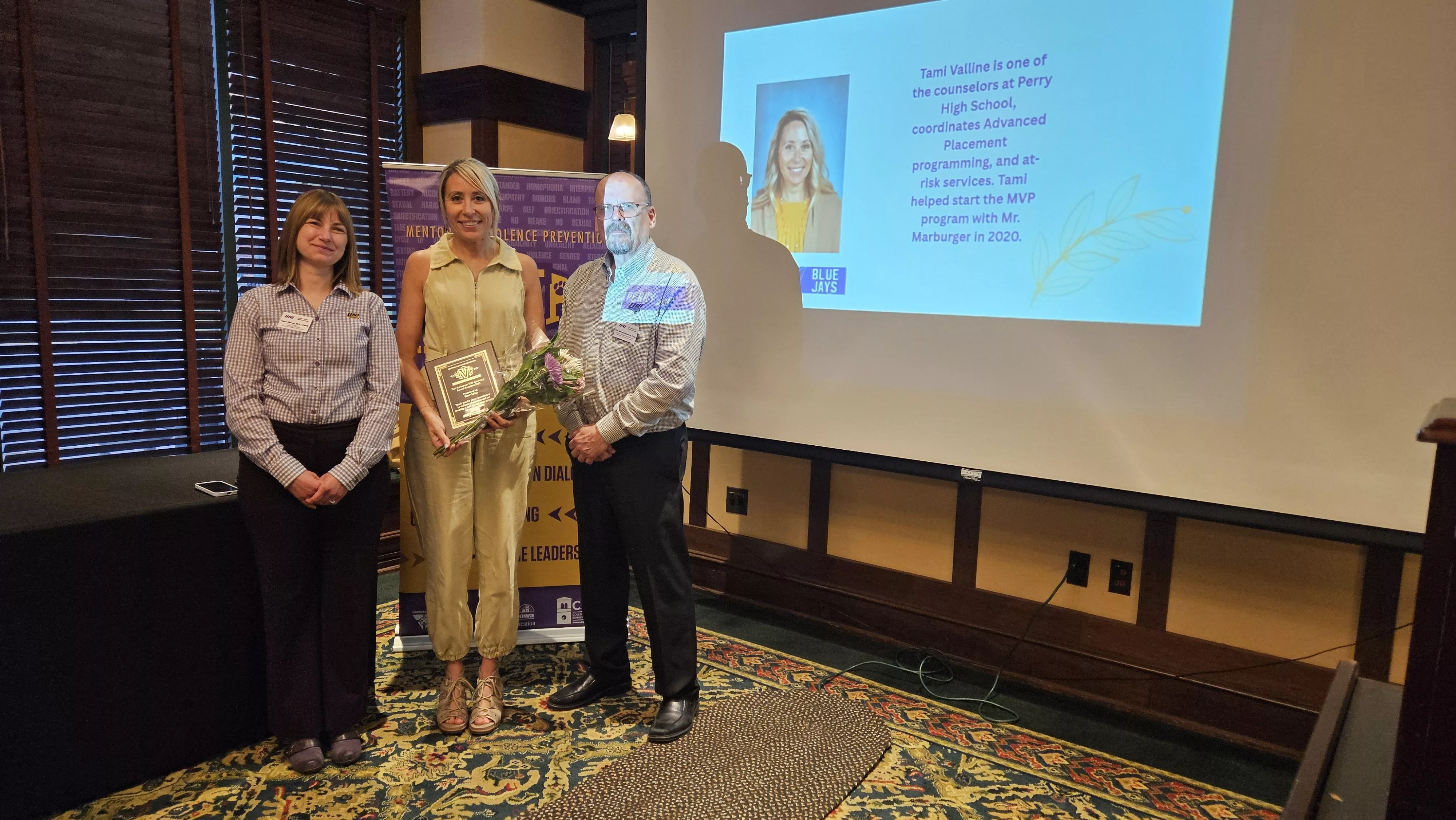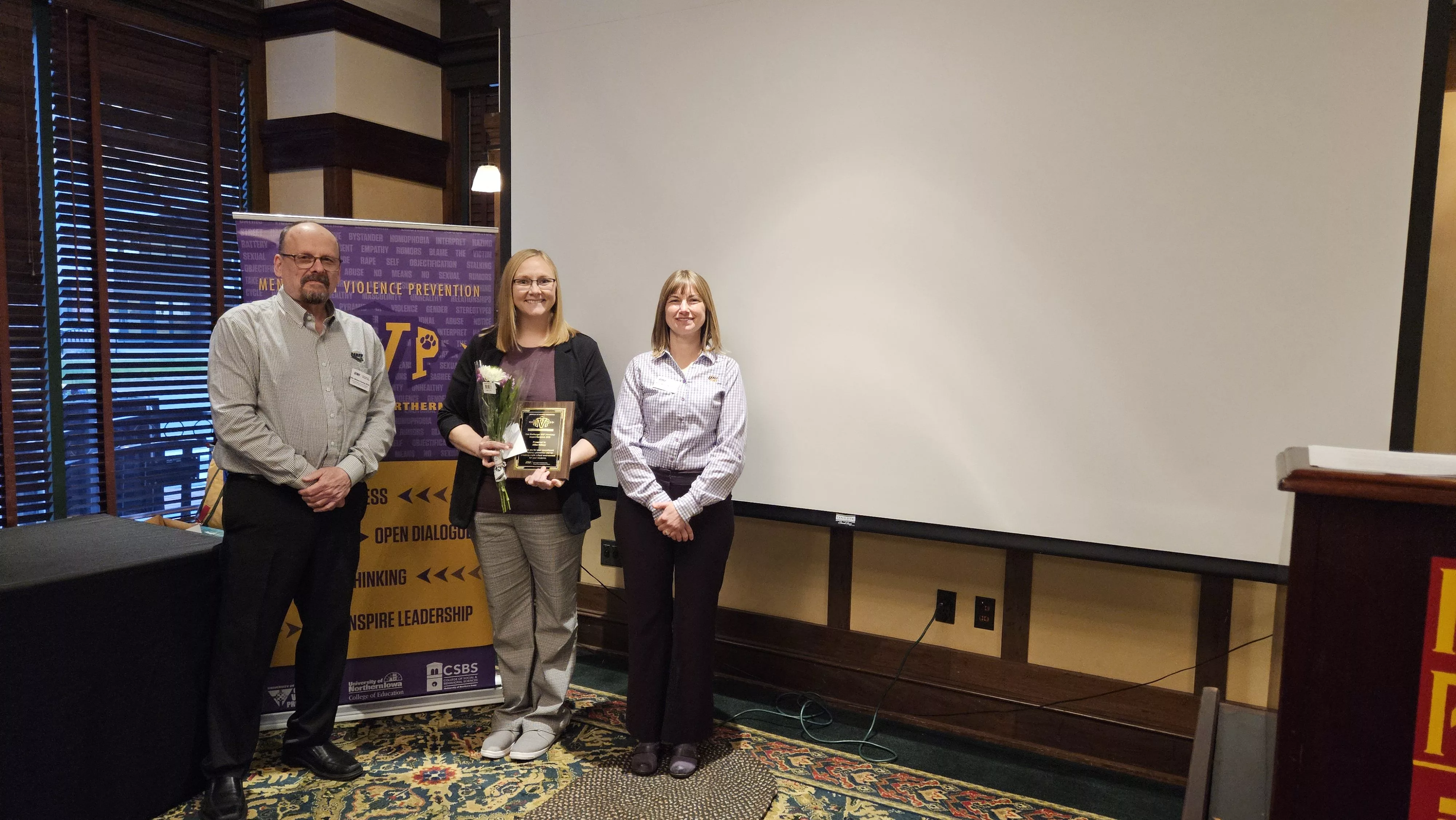 Patricia A. Tomson Center for Violence Prevention honored four individuals with the debut Dan Marburger Mentors in Violence Prevention (MVP) Advocacy Awards. According to Director Alysa Mozak, Marburger was a champion of the MVP Strategies program as he exemplified the qualities through his words and actions. She explains that she knew Dan personally and that his daughter Ainsley attended UNI and has been an MVP Ambassador for over three years.