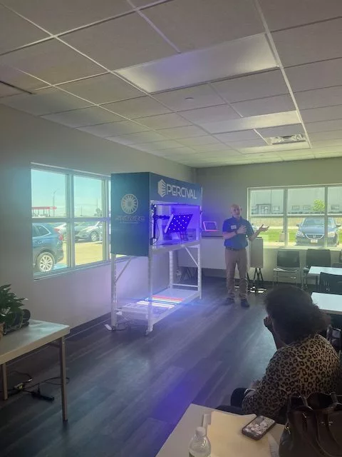 Oakland took a moment to honor Percival Scientific’s other senior members including Director of Finance Emily Shields, Senior Vice President of Engineering Henry Imberti, VP of Engineering Daniel Kiekhaefer, Director of Manufacturing Jesse Smith, and Marketing Coordinator Quinn Whitton. The presentation ended with a tour of the facility.