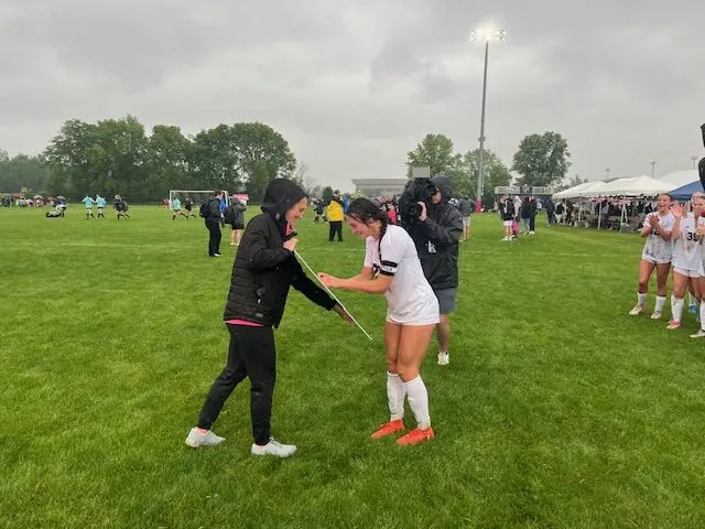 Then about 10 minutes later, Independence freshman Arabella Louvar was assessed a yellow card for tripping, giving Grove a penalty kick, which went right over the head of Beyer for the go-ahead goal and her second of the night (20:26). That goal gave her 100 for her high school career, as the Tigers would hold off to win 2-1. Grove shares how ADM kept their composure following the quick strike from Independence.
