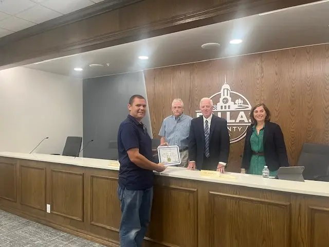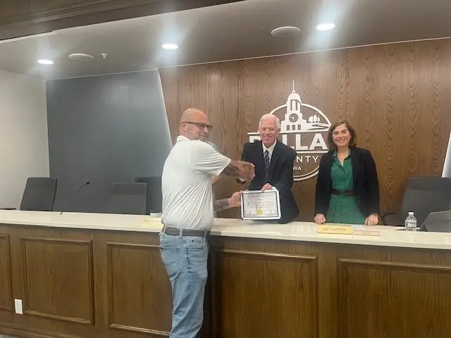 The board honored 12 individuals with certificates of appreciation for their years of service in different departments, including the Sheriff’s Office with Holly Smith for five years and Ryan Bowers for 25 years; the Veteran’s Affairs Office celebrated Alan Horn for five years and Nick Praska for 10 years; the Emergency Medical Services (EMS) recognized Joel Steenhoek for 10 years; the Secondary Roads Department had Steve Hick and Jeff Kruse for 10 years, then Steve Gomke for 15 years; the Attorney’s Office honored Audra Ledbetter for 10 years; the Auditor’s Office celebrated Penny Freestone for 15 years; and the Treasurer’s Office honored Walter Juarez for 25 years of service.