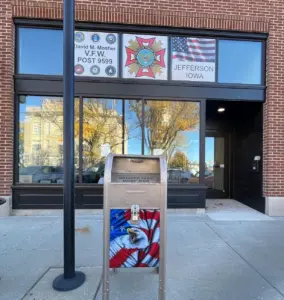 VFW Post Commander Jim Martin says there is a US Flag dropbox located directly in front of the VFW Hall on the east side of the downtown square in Jefferson. He tells Raccoon Valley Radio the US Flag should be replaced anytime it is fraying, torn or tattered and the dropbox is here for people to use for those situations.