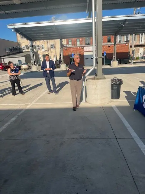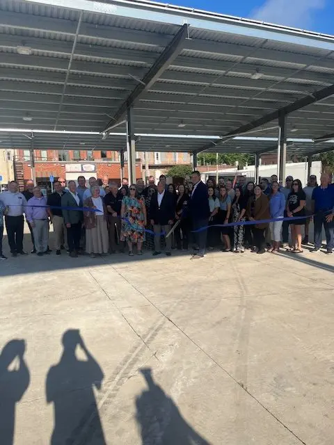 All summer long, the bank has been in the midst of installing new solar canopies over their parking lot and the project was commemorated with a ribbon cutting from the Perry Chamber of Commerce on Thursday. RVB President and Chief Executive Officer Terry Nielsen explained that a number of contractors helped complete the project over the summer, with the likes of Van Wall Energy, Elite Electrical, Harlan Concrete, and Hughes Excavation. He shares that the bank had the vision of putting up the solar canopies since 2023, and saw the impact they were making at their Dallas Center location.